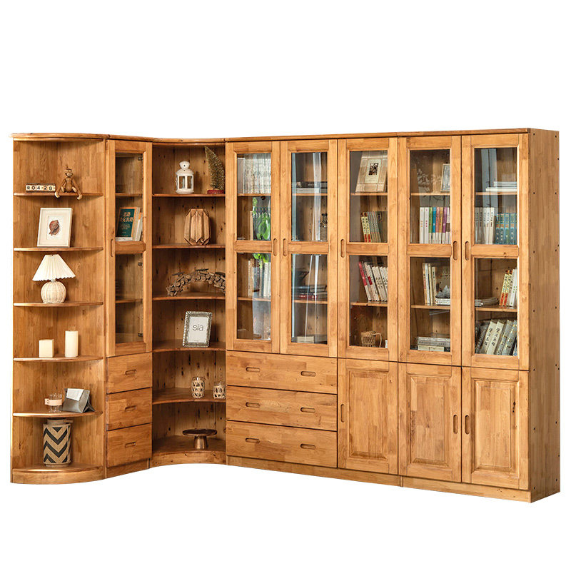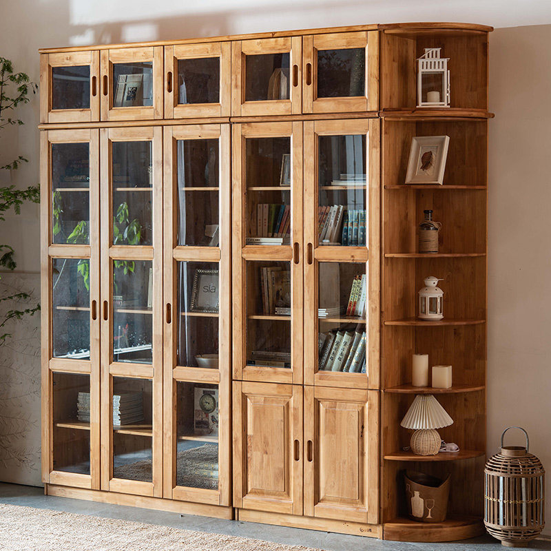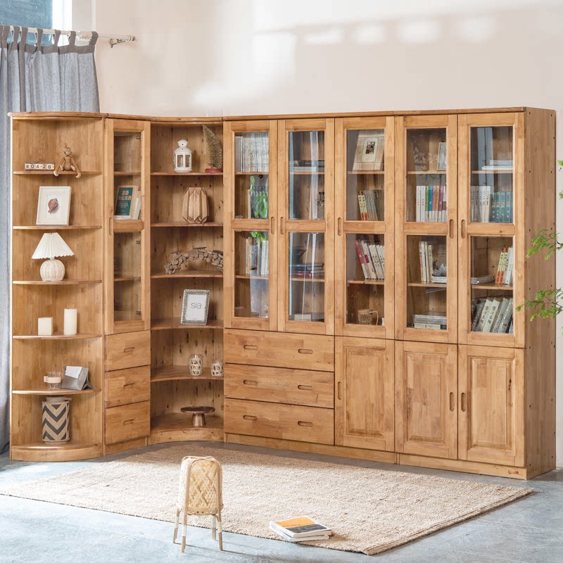 淘宝实木书柜简约现代书架整面大书橱玻璃门柏木转角储物柜新中式家具