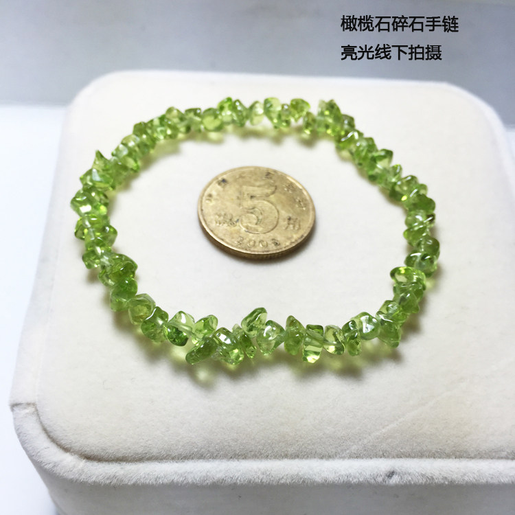 淘宝正品天然橄榄石手链 碎石手串水晶女款饰品 简约个性幸福石散珠