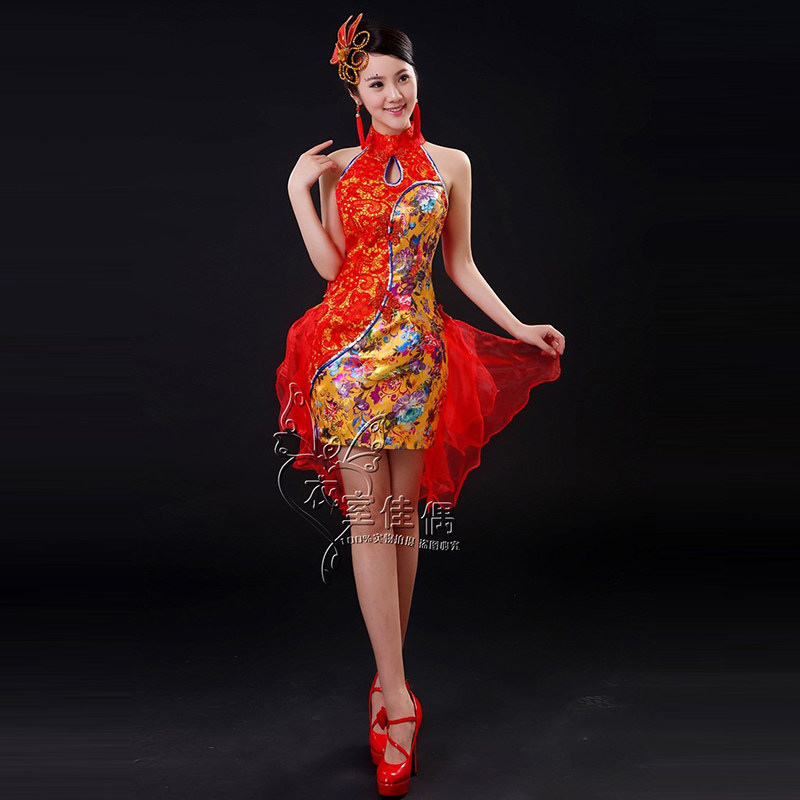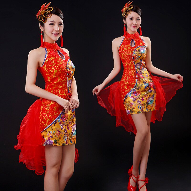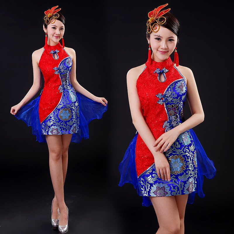 淘宝时尚演出服开场舞现代舞舞蹈短裙女青春民族广场舞水鼓服装中国风