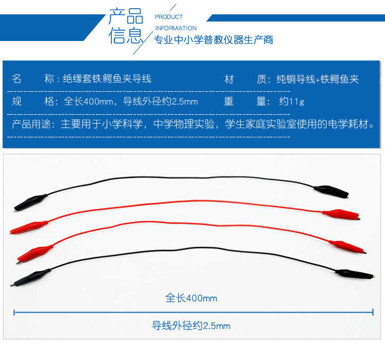 淘宝鳄鱼夹导线电线不锈钢鱼嘴夹鱼尾夹40cm物理电学中考实验器材单根