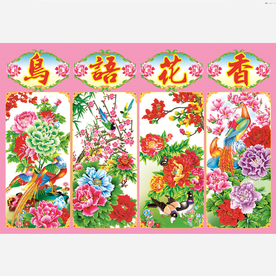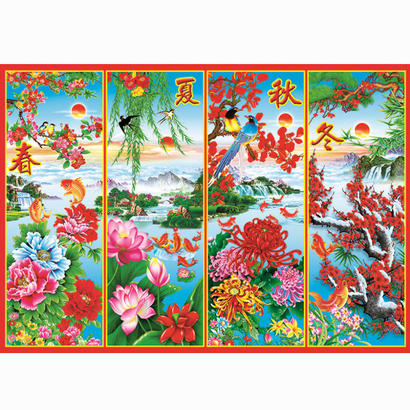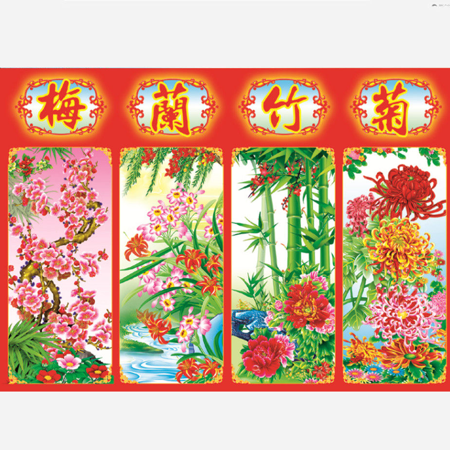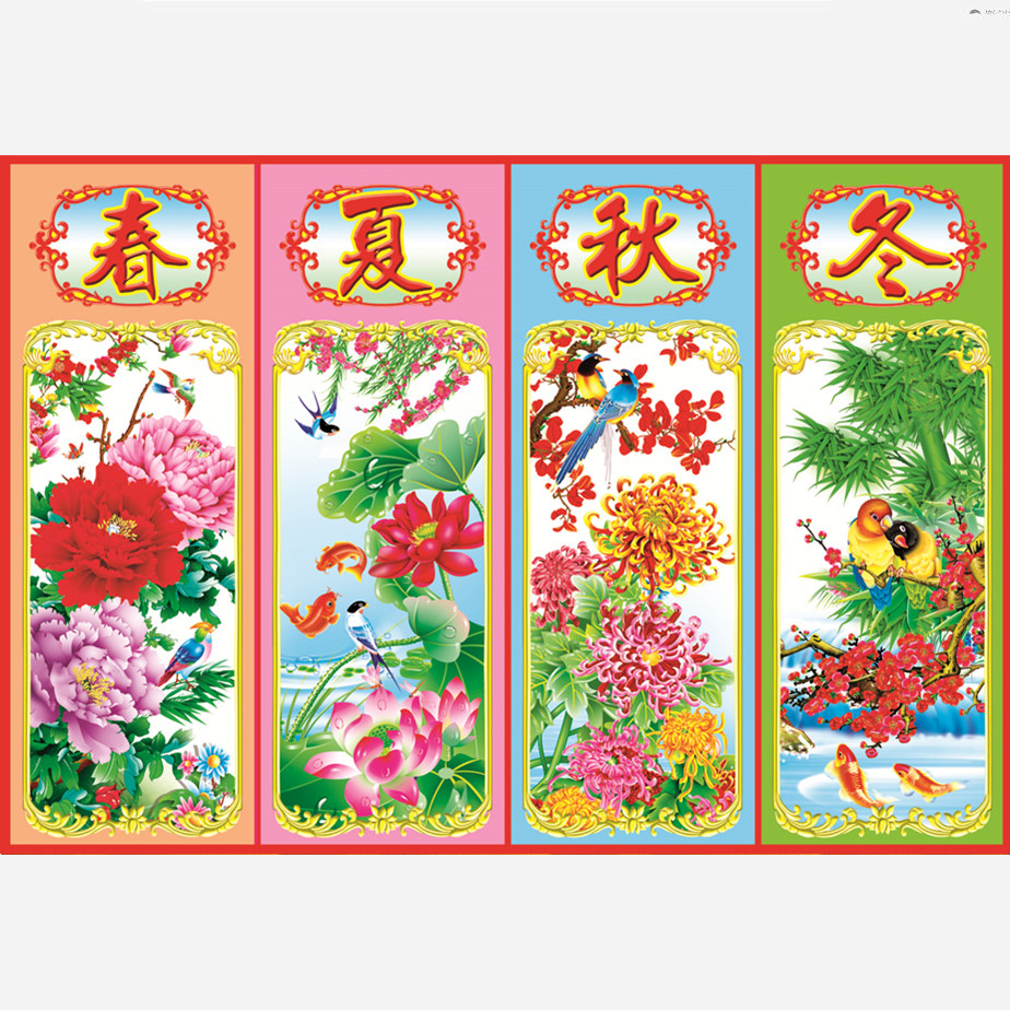 淘宝梅兰竹菊春夏秋冬国画客厅墙画装饰画四条屏贴图年画买二送一包邮