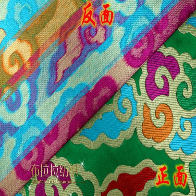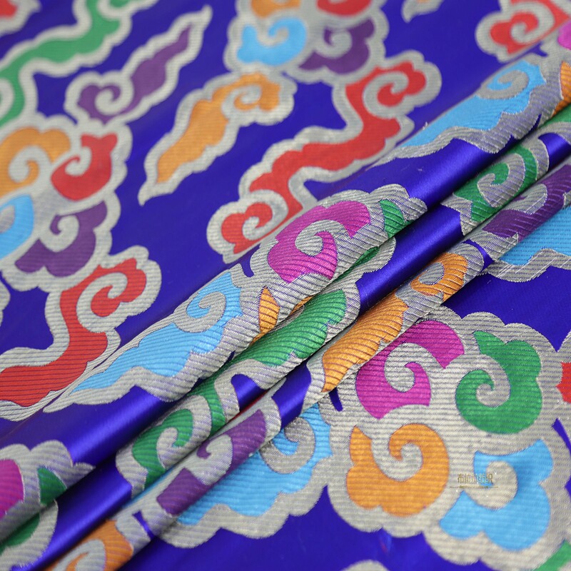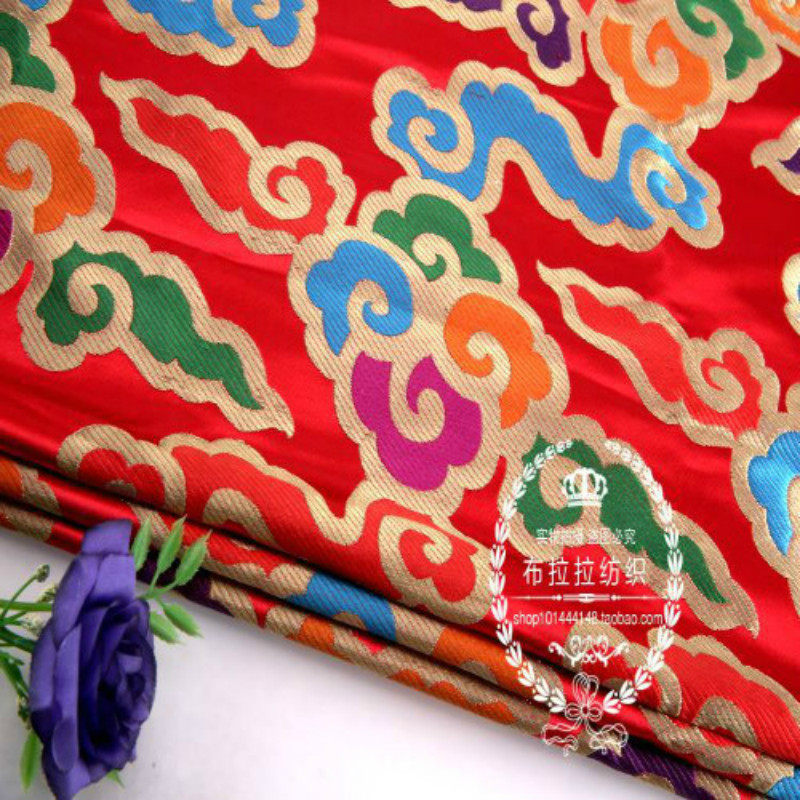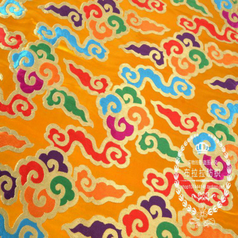 淘宝金黄红湖蓝底多色七彩祥云吉祥织锦缎面料/加厚金线藏式云锦布料