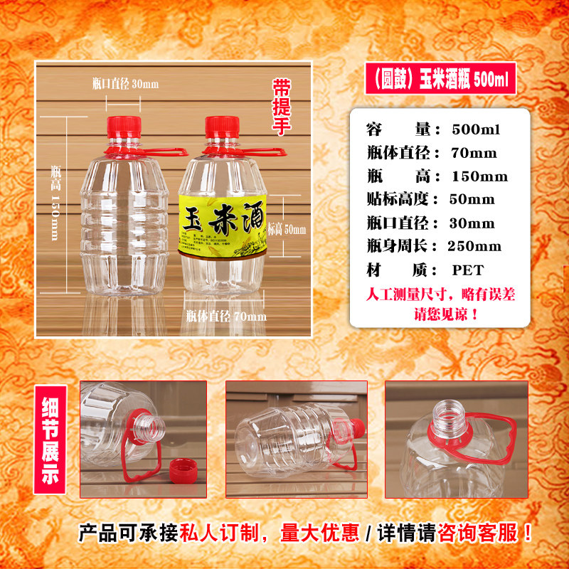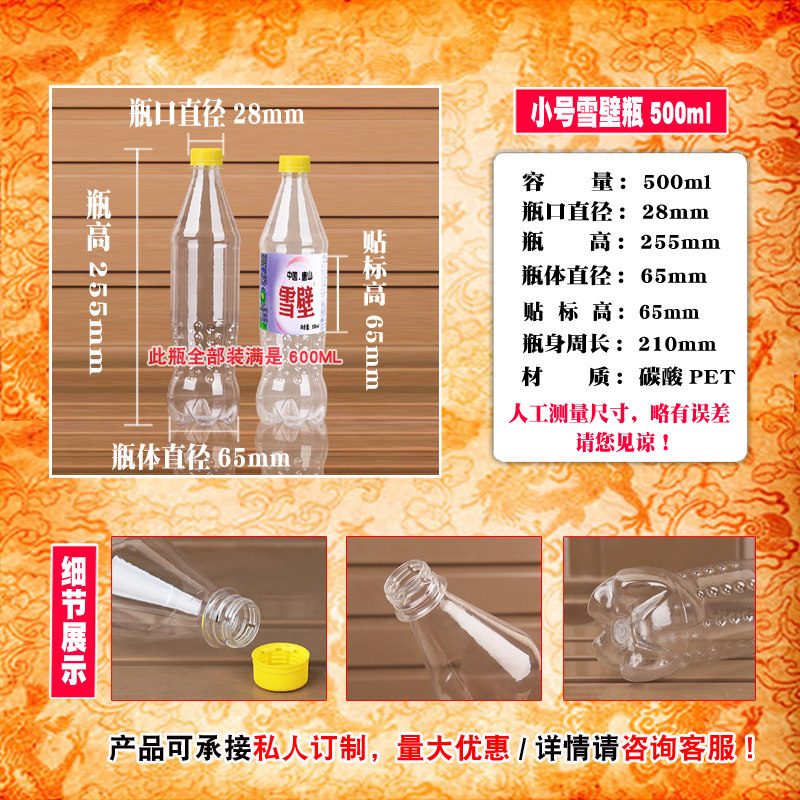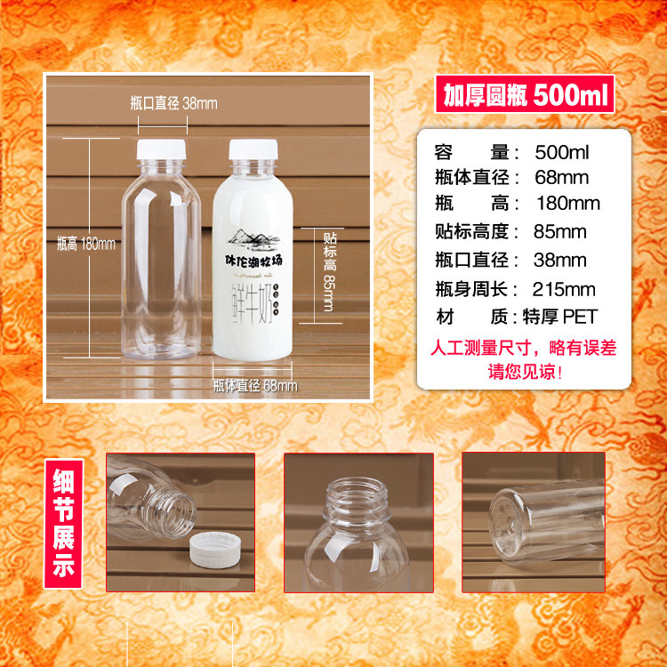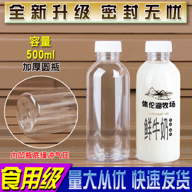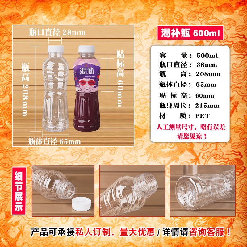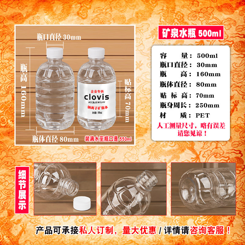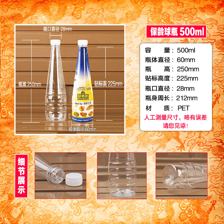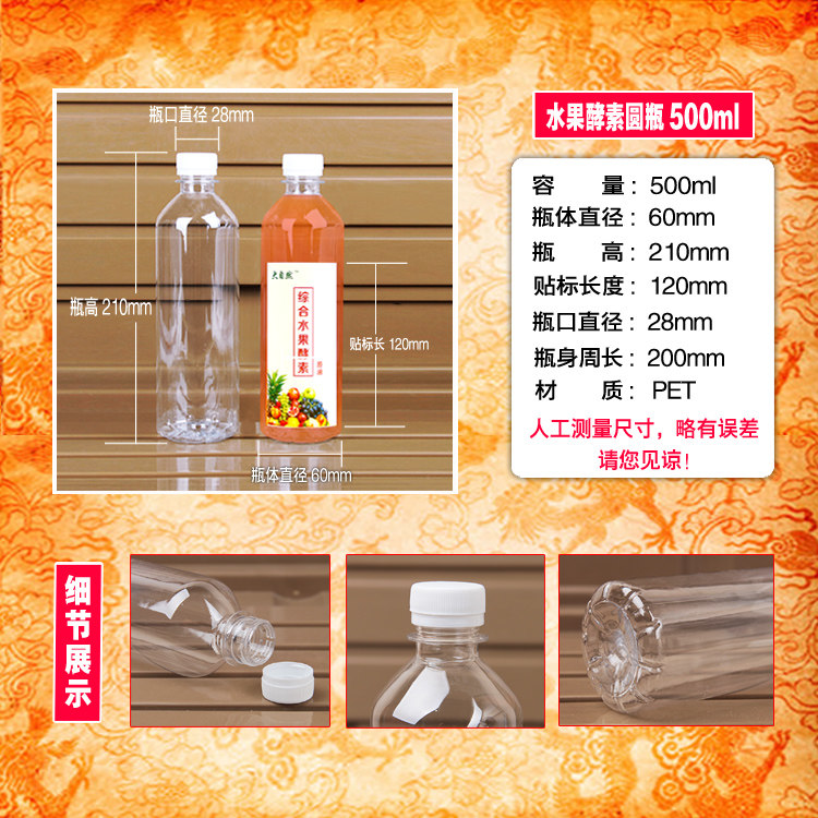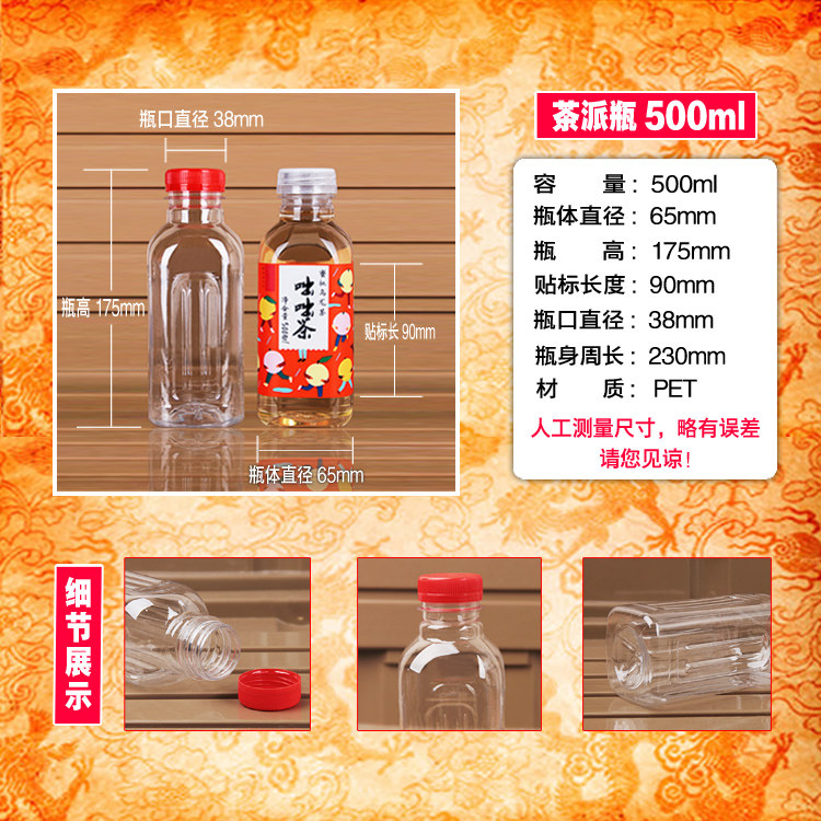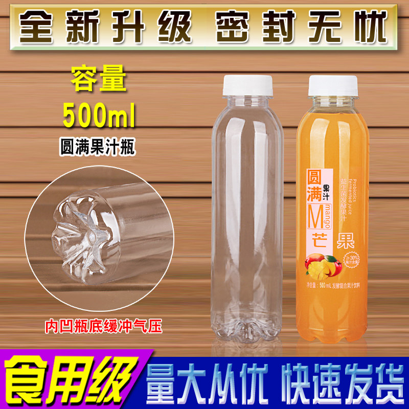 淘宝500ML透明塑料瓶子空矿泉水饮料样品酒蜂蜜一次性食品级外卖带盖