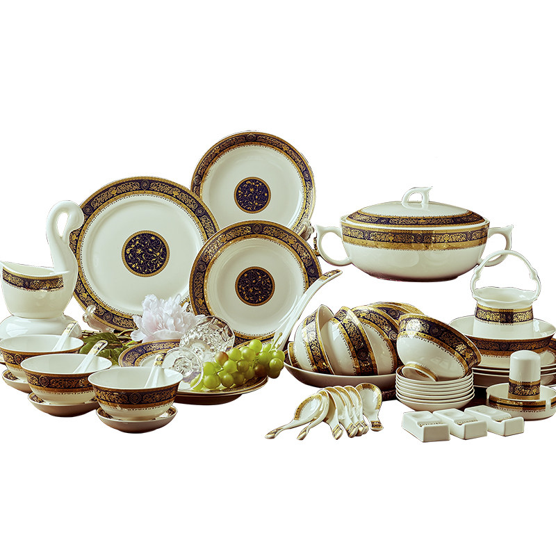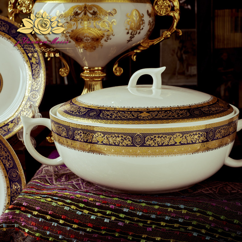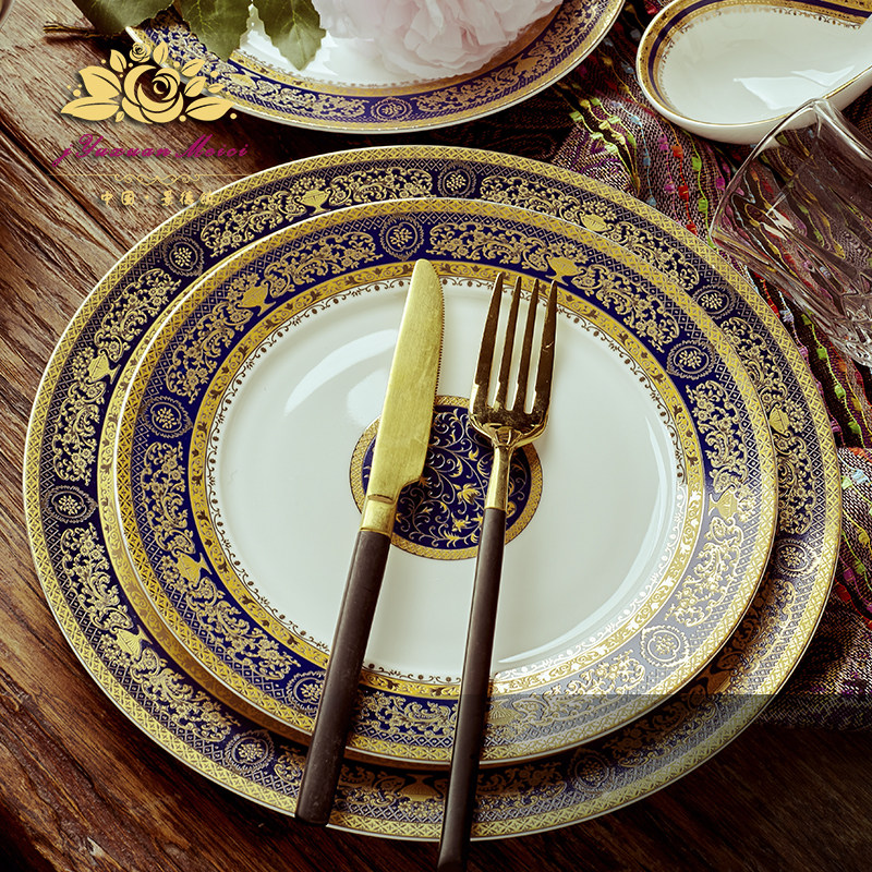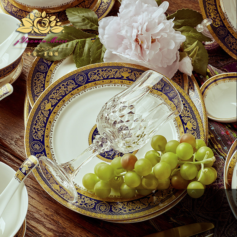 淘宝欧式餐具套装60头景德镇高档骨瓷碗盘碟套装西式金边陶瓷家用送礼