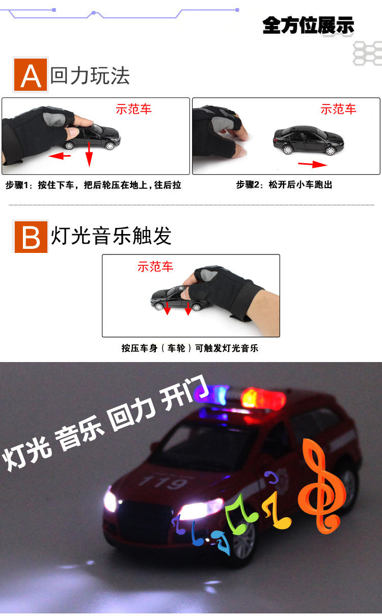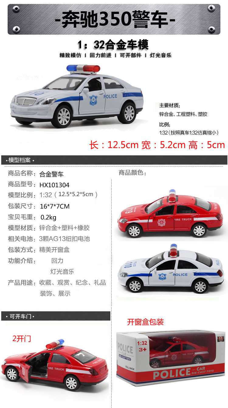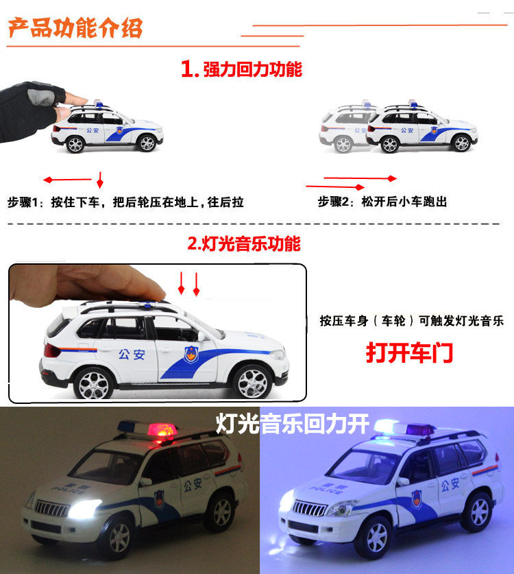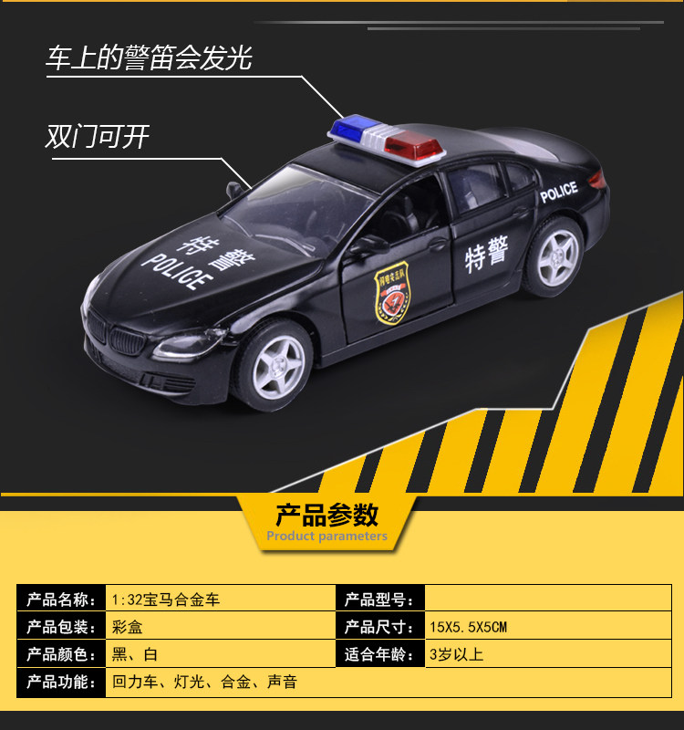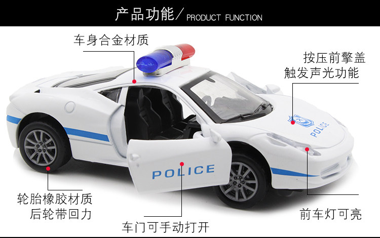 淘宝合金车模型 兰博基尼宝马仿真警车儿童玩具车声音灯光回力汽车