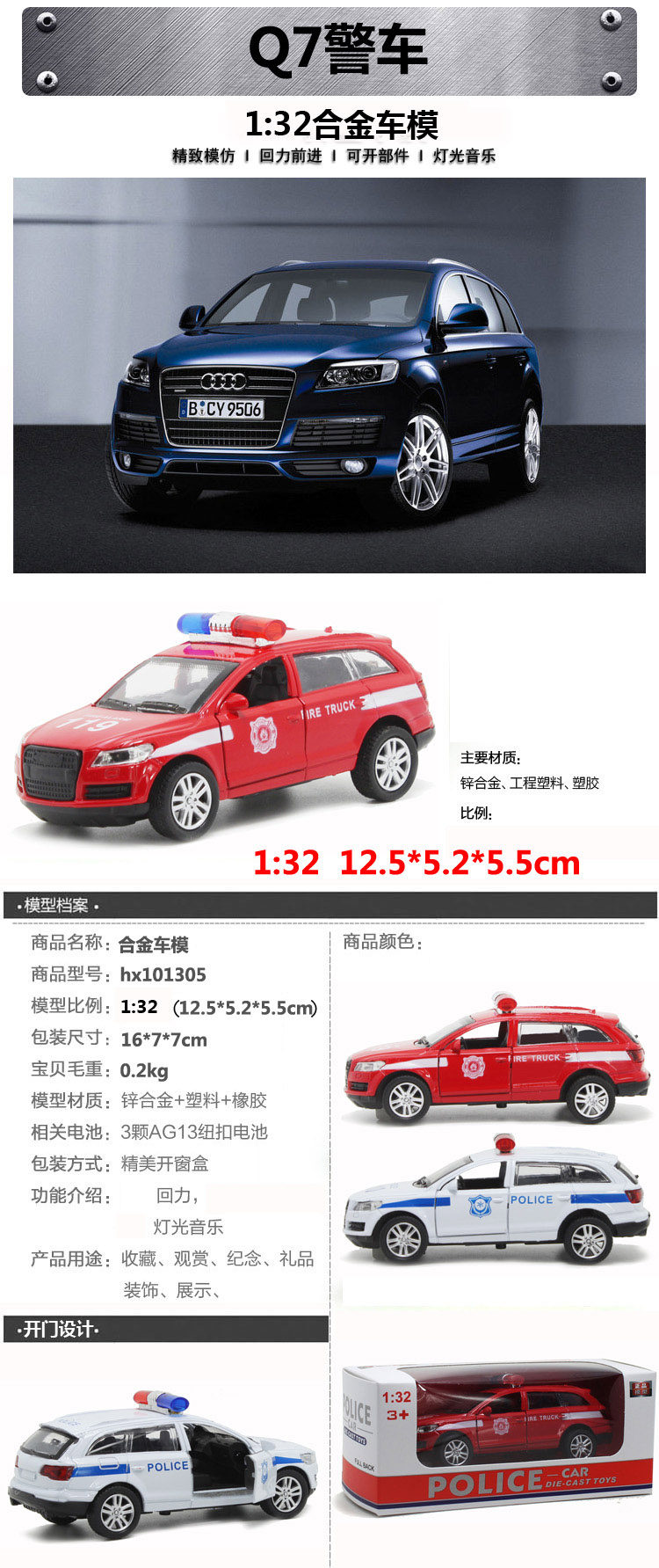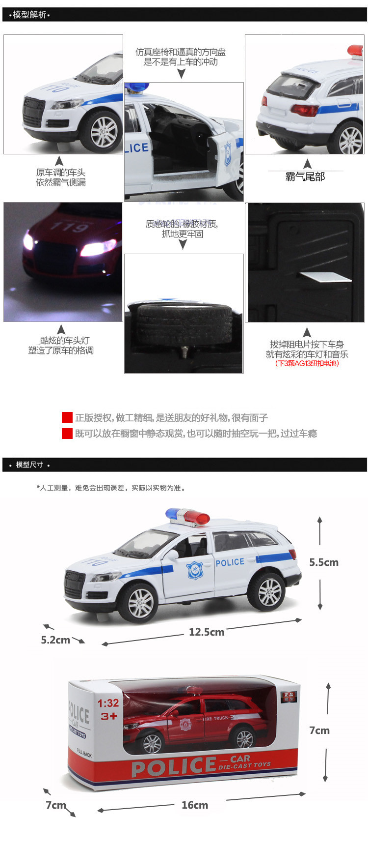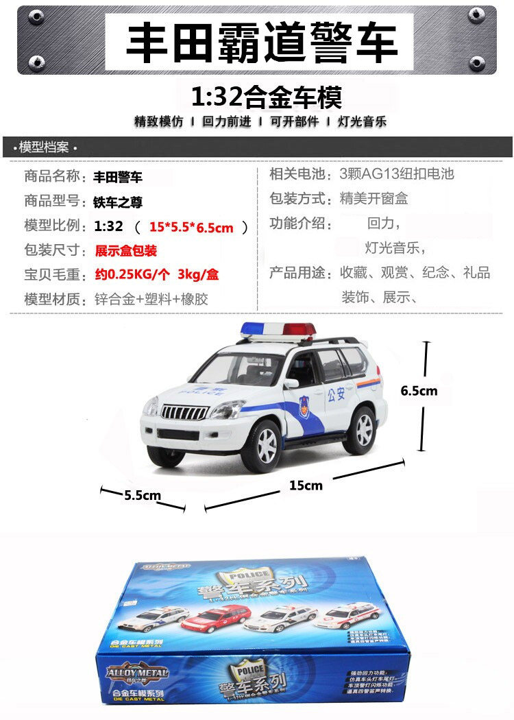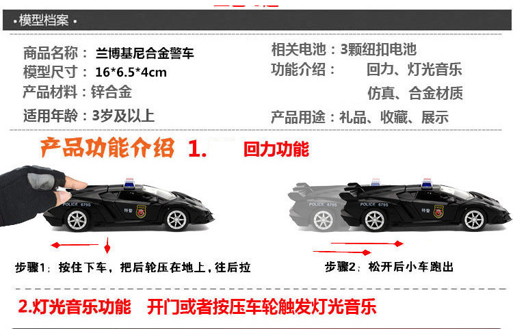 淘宝合金车模型 兰博基尼宝马仿真警车儿童玩具车声音灯光回力汽车