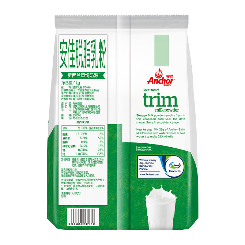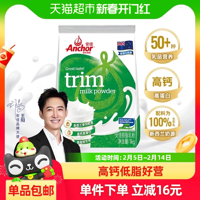 Taobao【进口】安佳高钙脱脂青少年奶粉1kg/袋成人学生儿童中老年奶粉