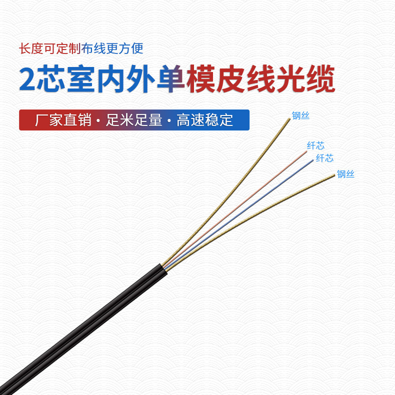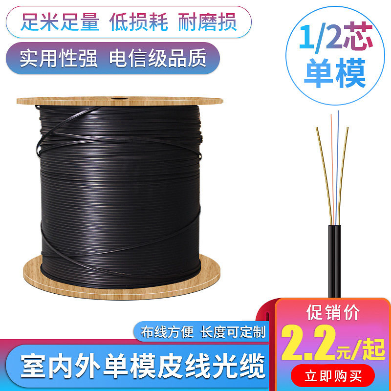 淘宝室外成品铠装光缆 1芯2芯室外皮线光缆自承式1芯2芯室内皮线光纤室外蝶形光缆入户线单模光纤户外光纤线网线