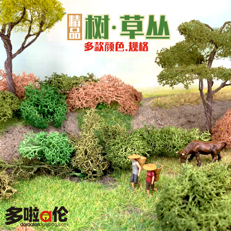 淘宝树草丛 盲盒配景模型地衣仿真灌木丛兵人建筑沙盘场景观地台高达