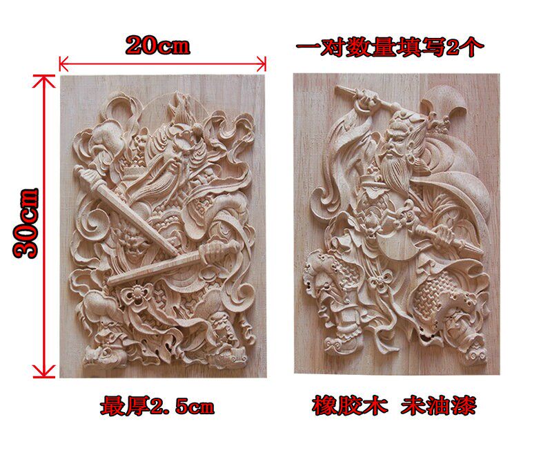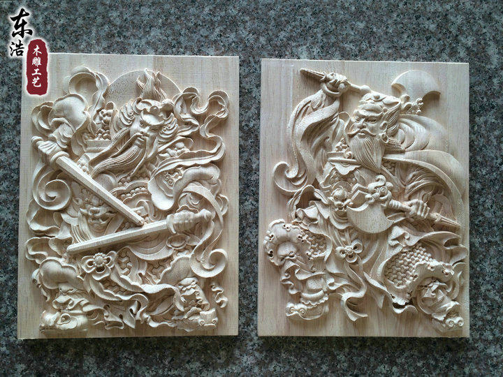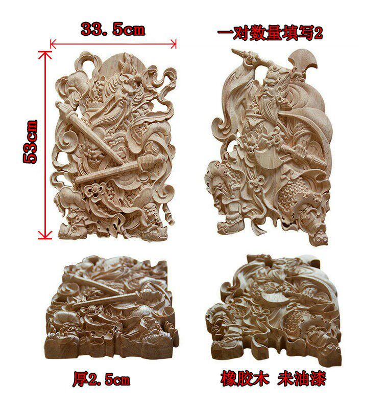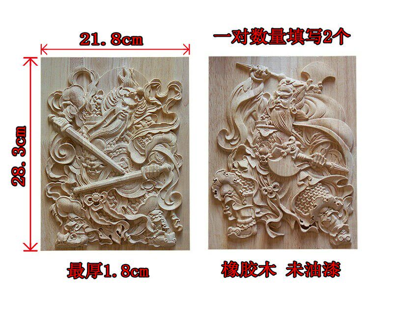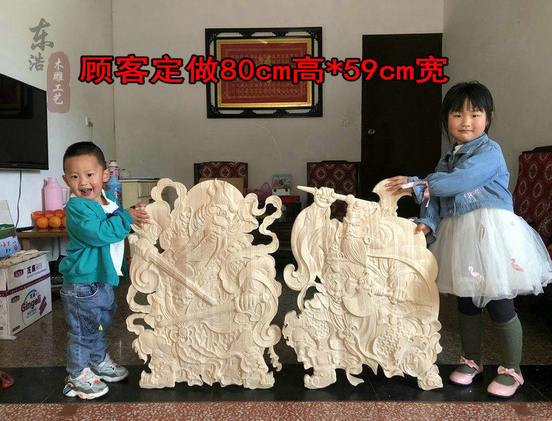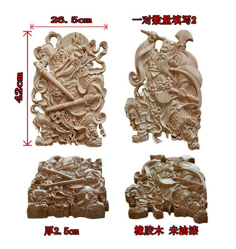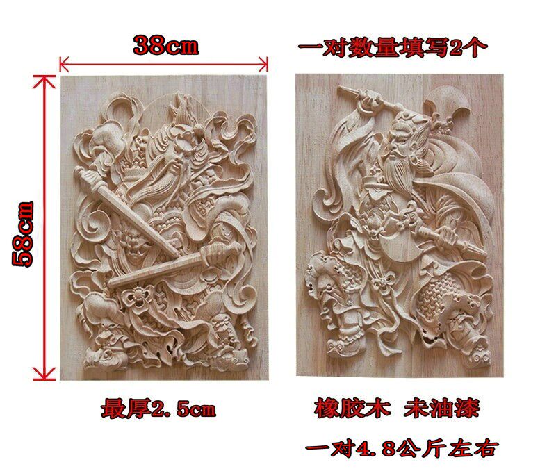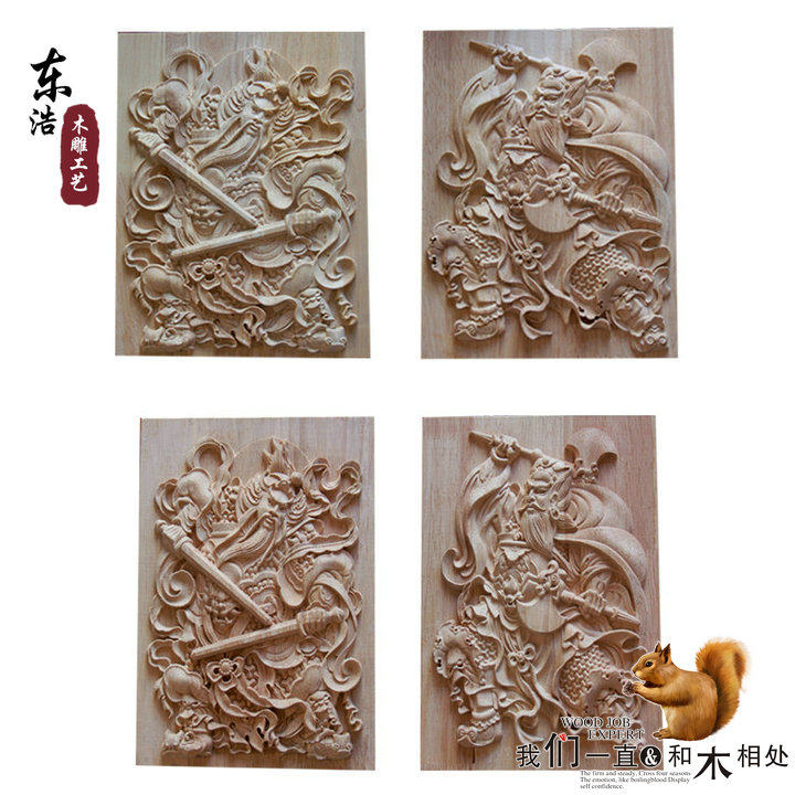 淘宝门神木质挂件 东阳木雕 中式方形木雕门神实木门头装饰花