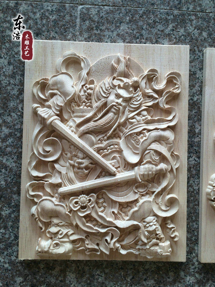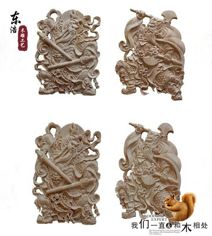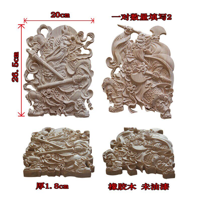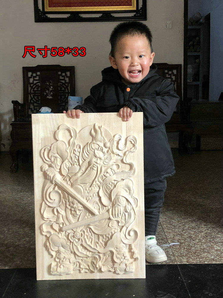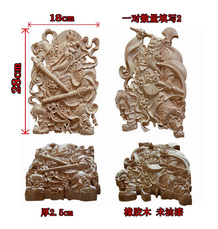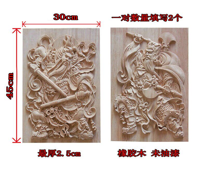 淘宝门神木质挂件 东阳木雕 中式方形木雕门神实木门头装饰花