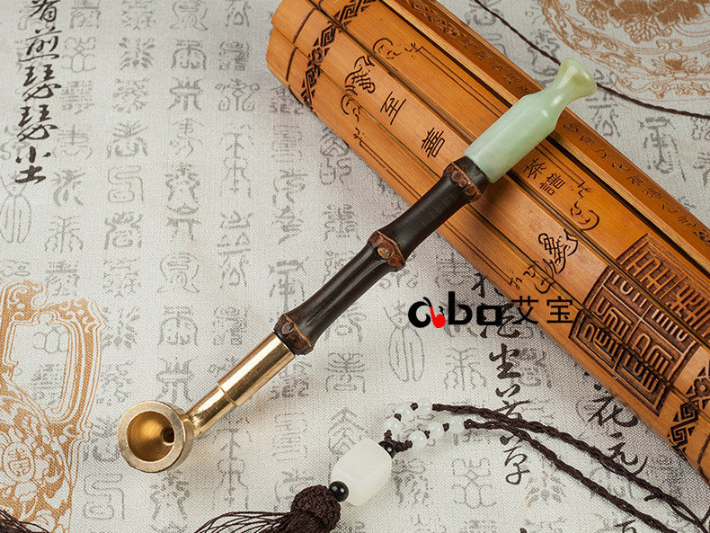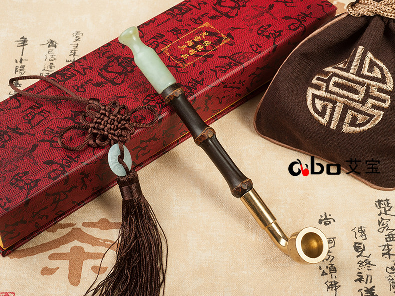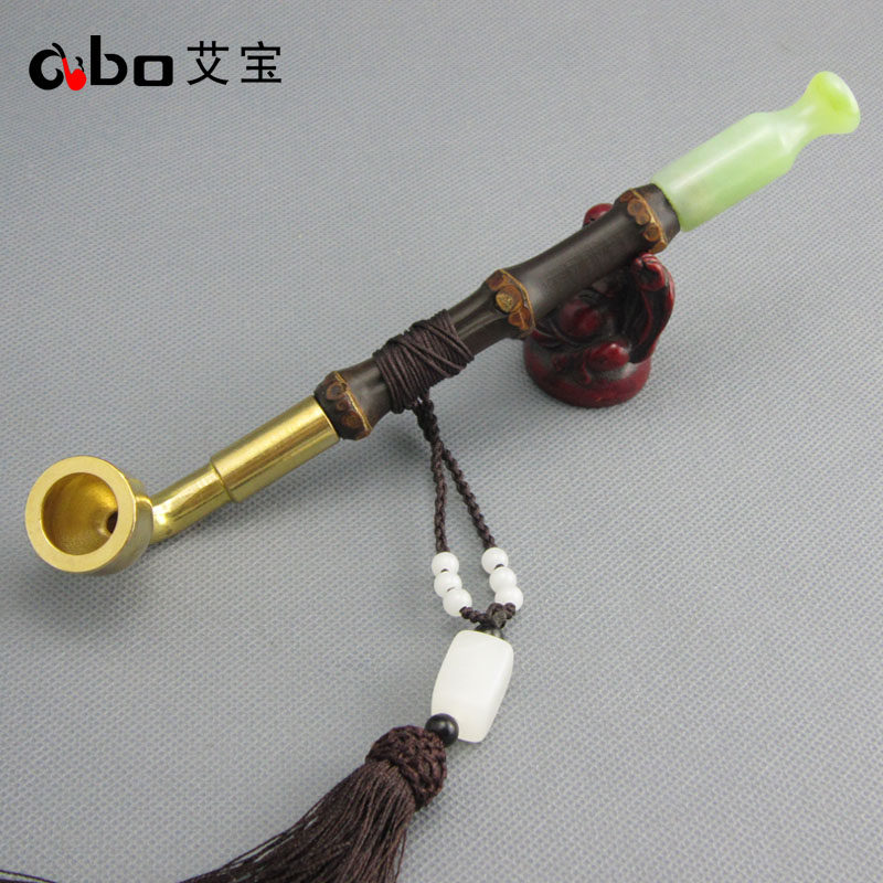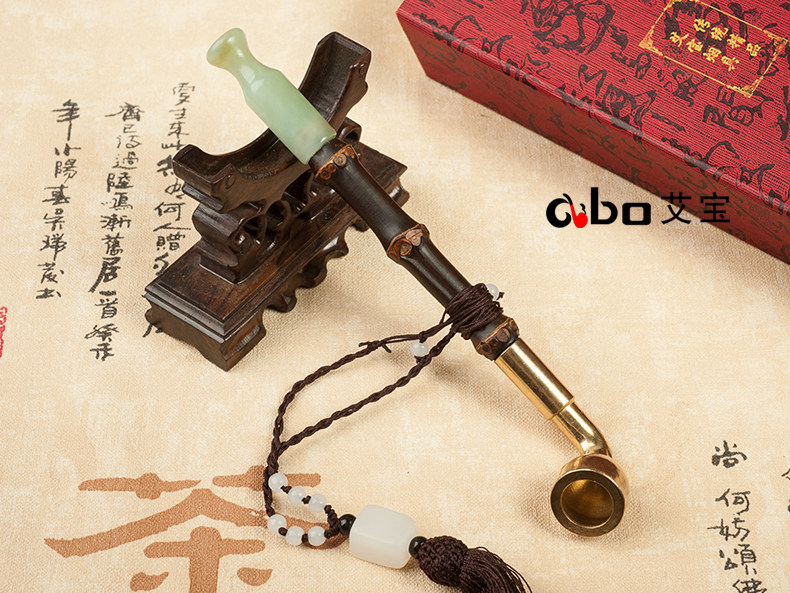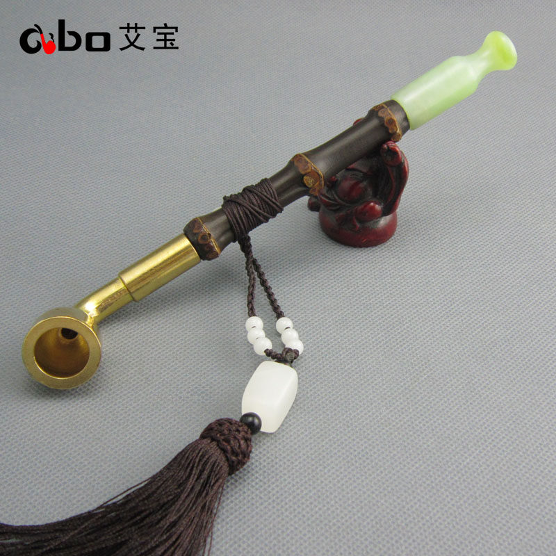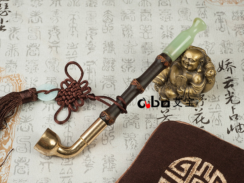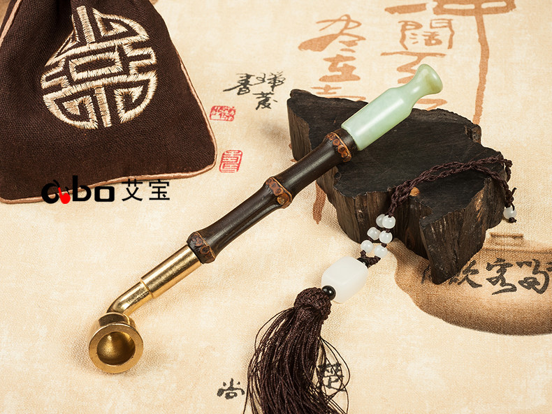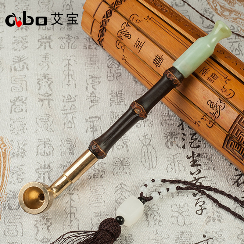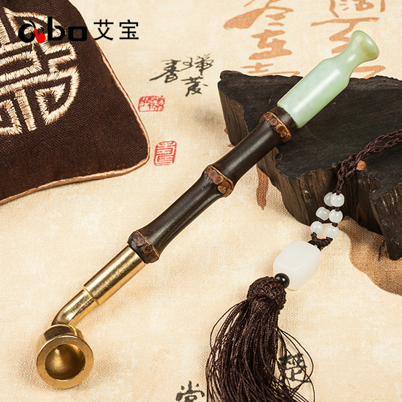 淘宝艾宝老式黄铜过滤两用旱烟袋锅子手工紫竹节烟杆玉石烟嘴男士烟枪