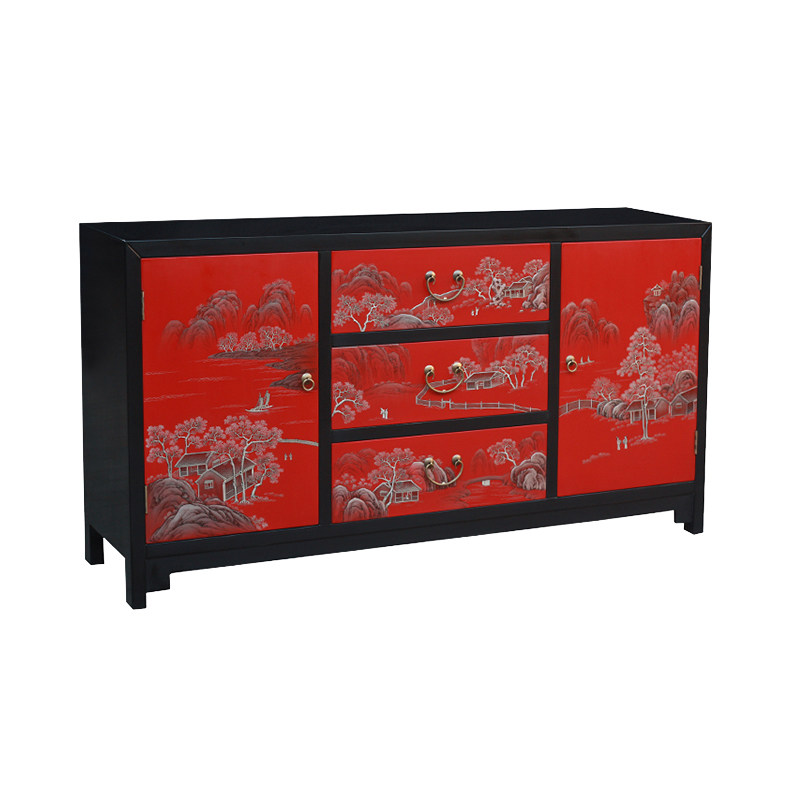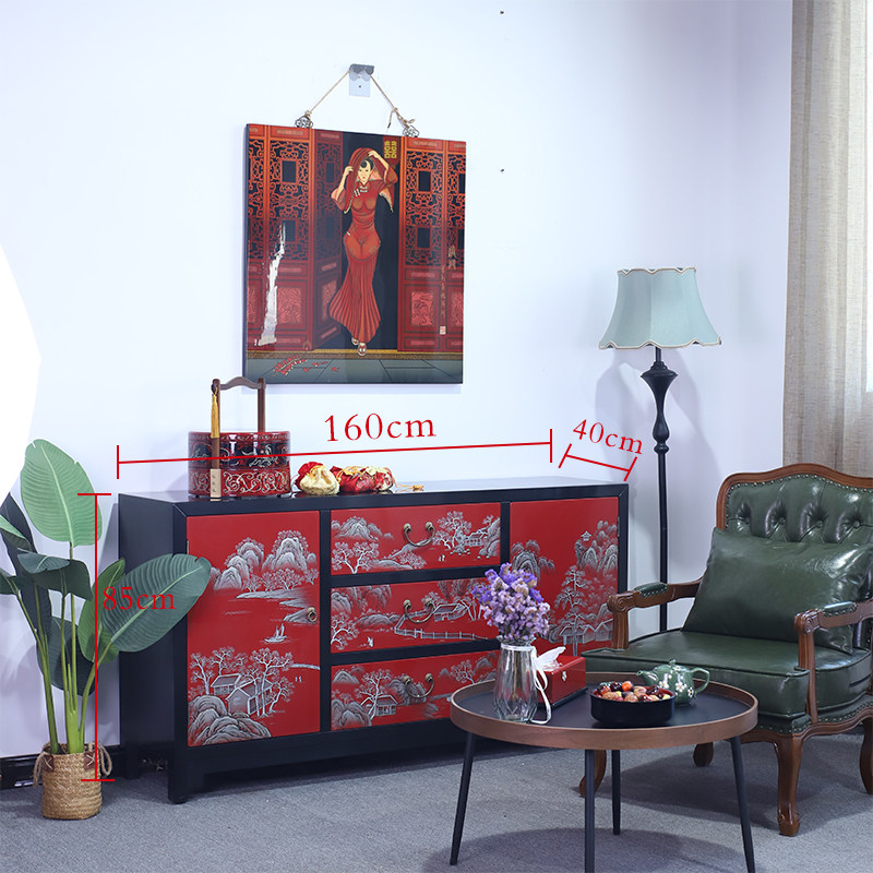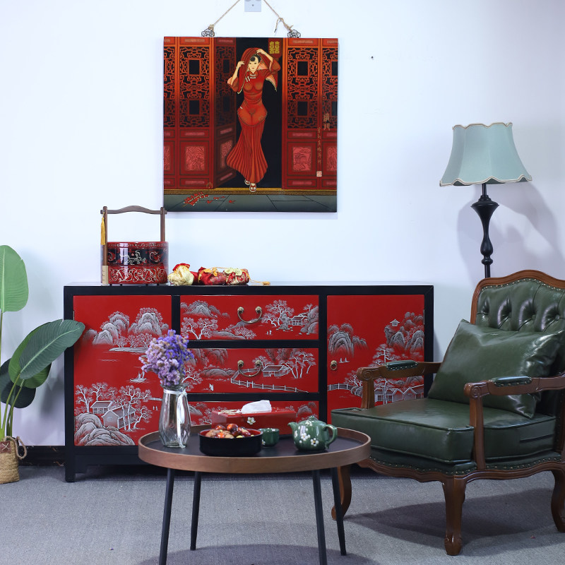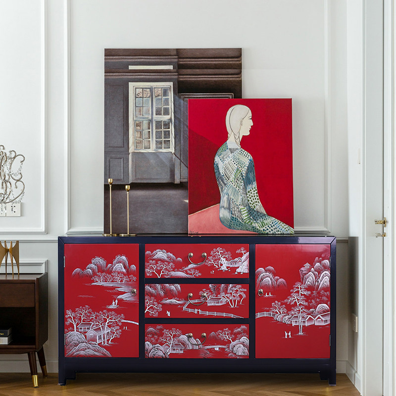 淘宝现代中式彩绘门厅柜玄关隔断柜推光漆器家具实木家用收纳柜入户柜
