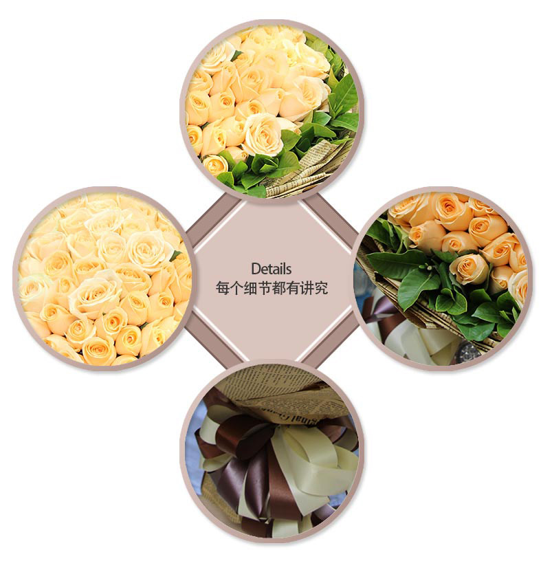 淘宝99朵香槟玫瑰鲜花速递同城生日送女友送上海北京广州深圳南京无锡