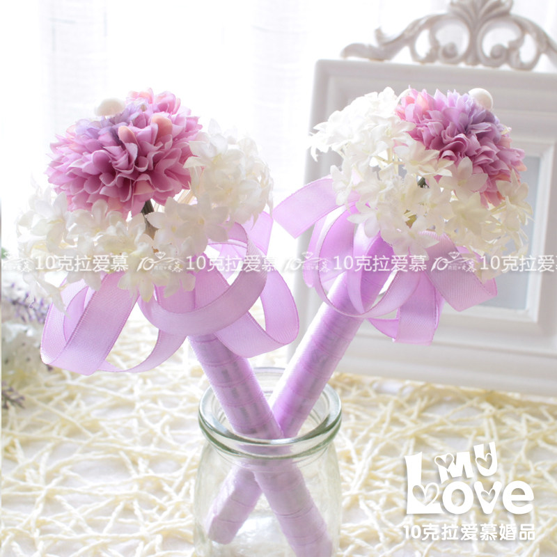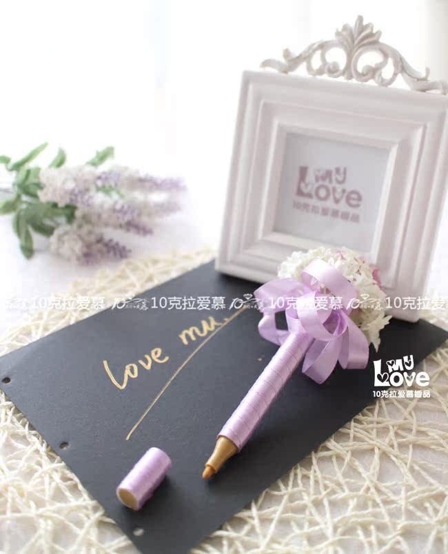 淘宝纯手工紫色婚礼签到笔结婚嘉宾签名笔创意商务婚庆签到台装饰