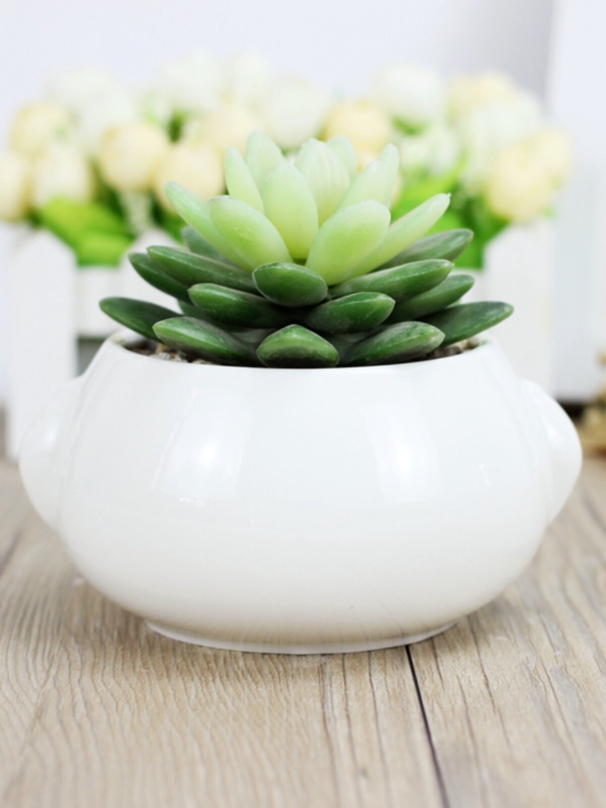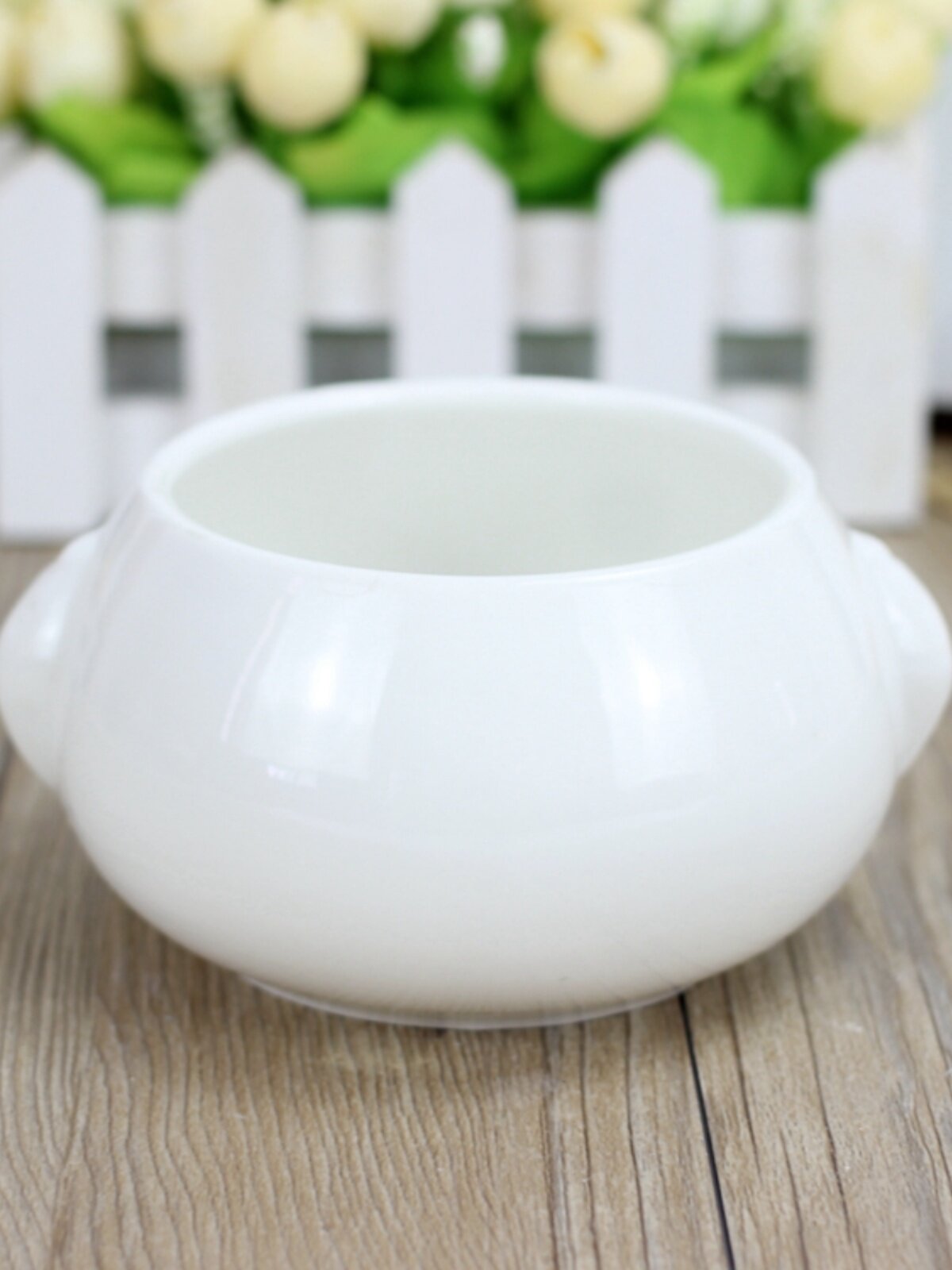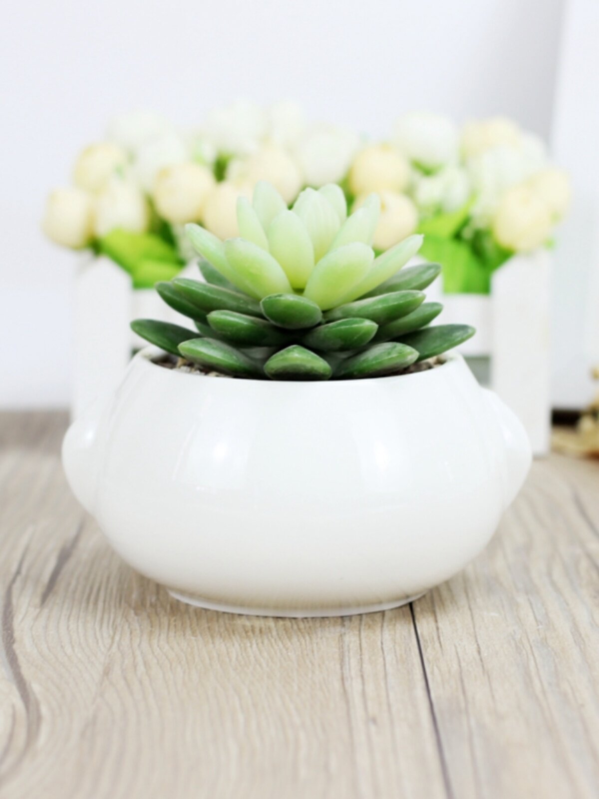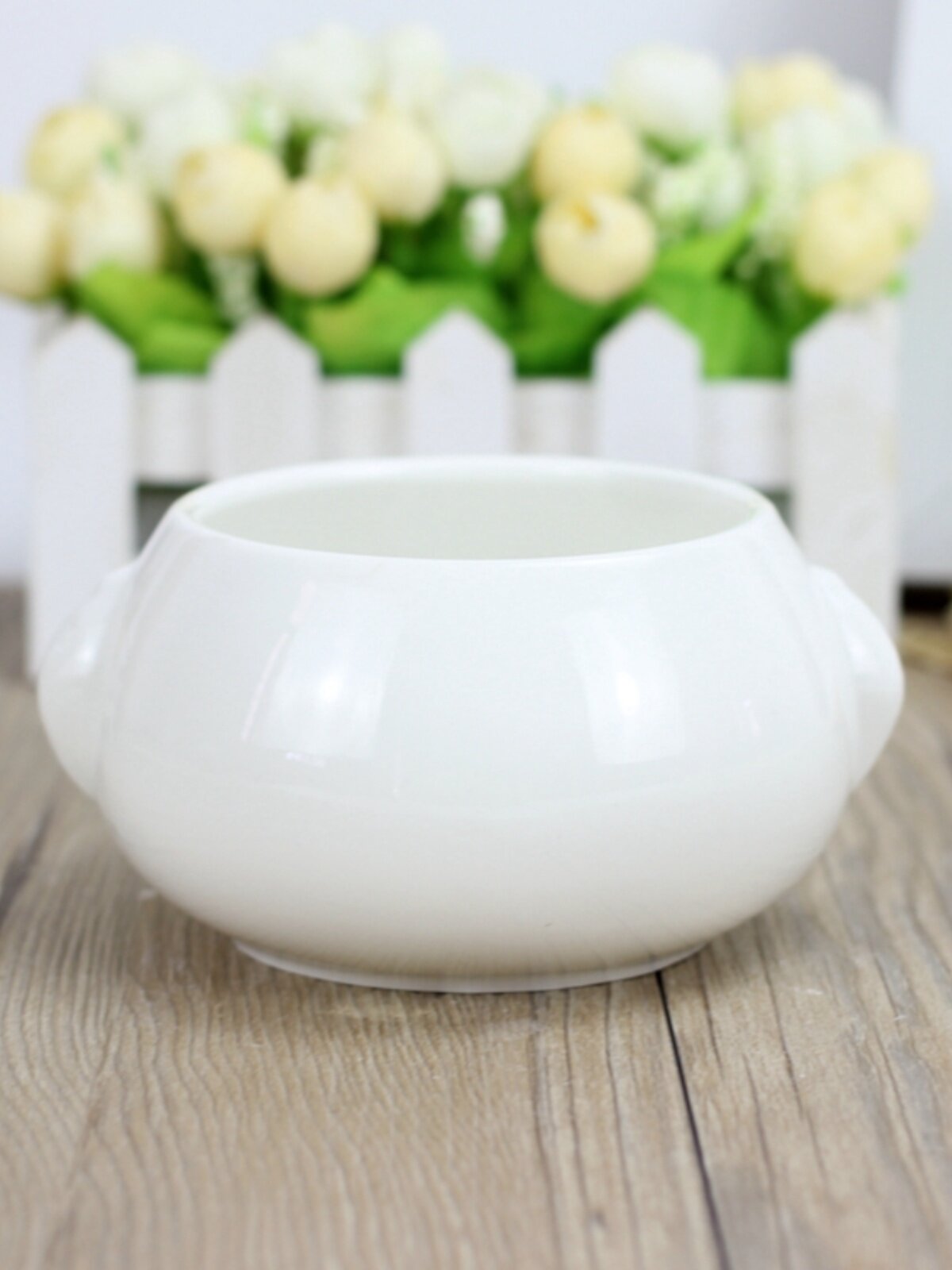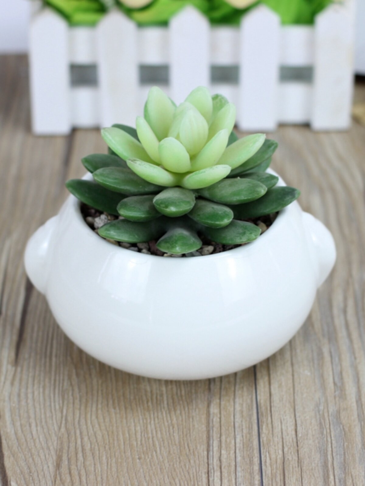 淘宝新品时尚可爱白色圆扁球形盆栽创意多肉陶瓷带耳头型卡通肉肉花盆
