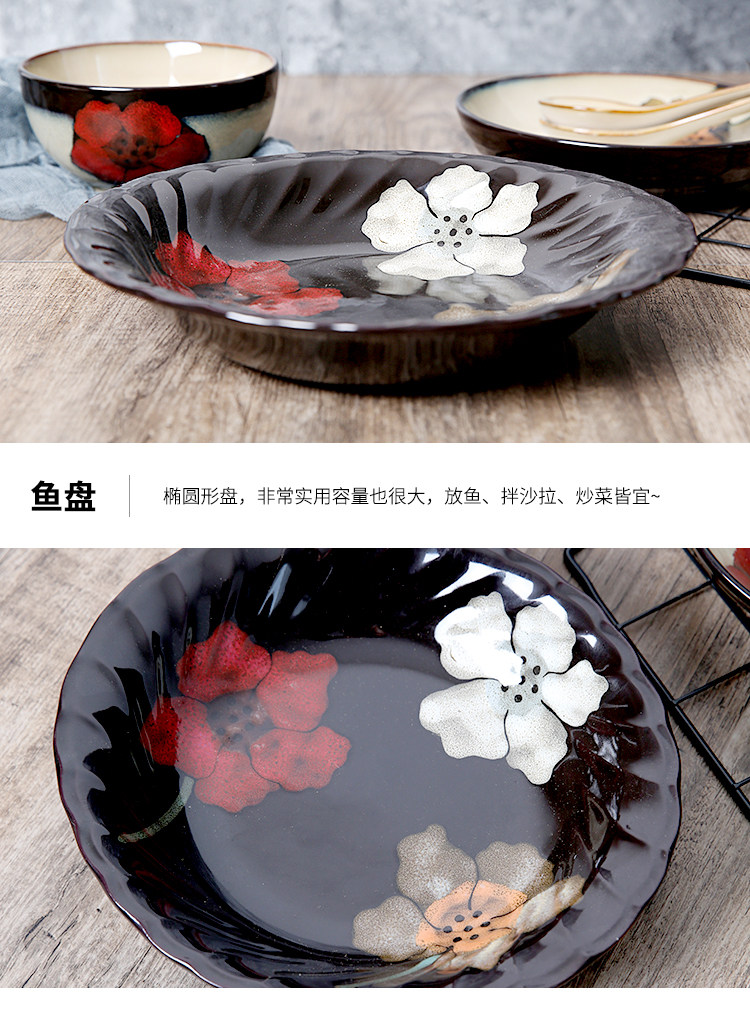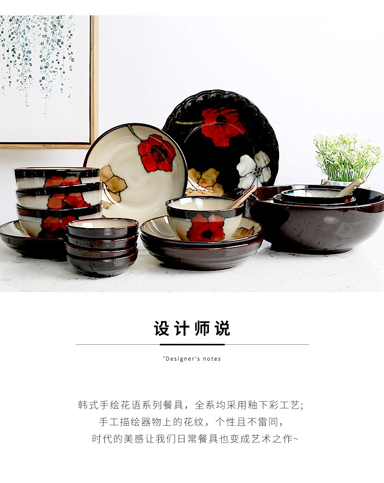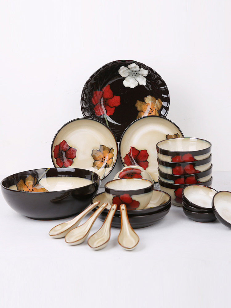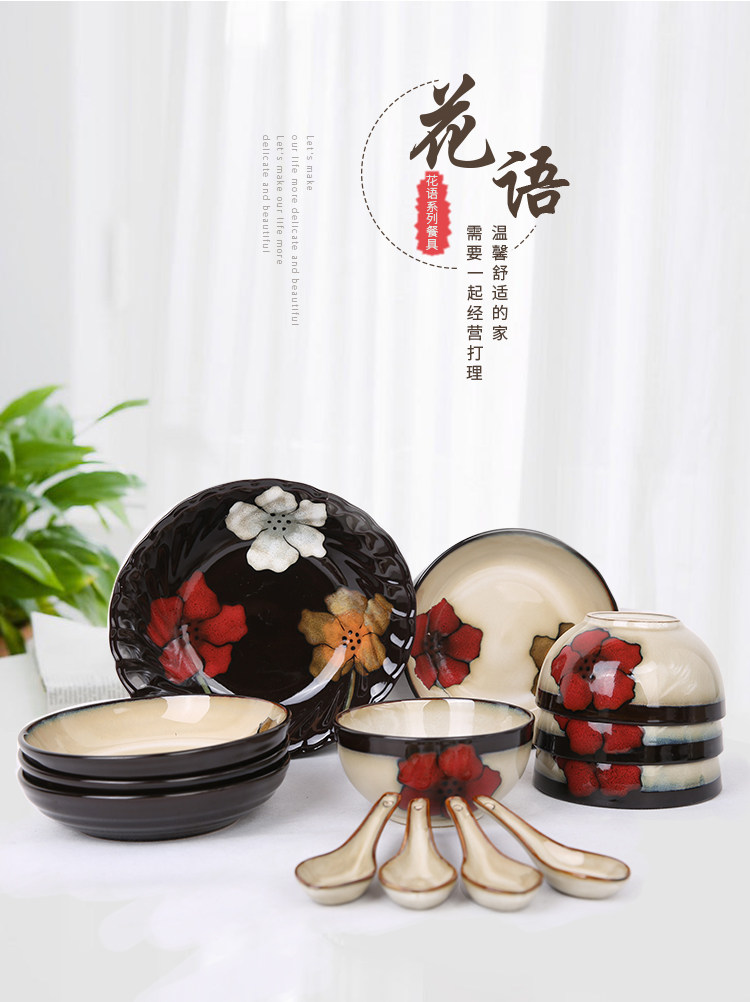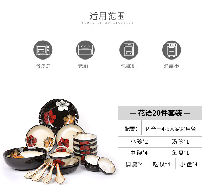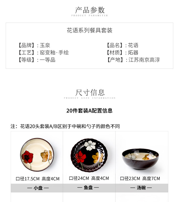 淘宝玉泉花语20头中式碗碟餐具套装韩式陶瓷碗盘釉下彩家用菜盘子平盘