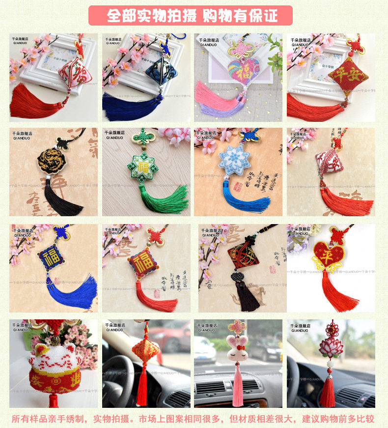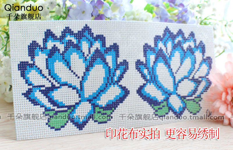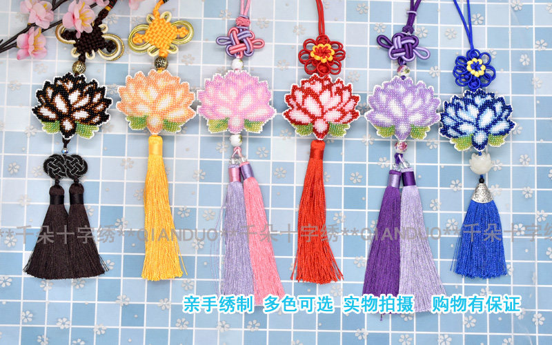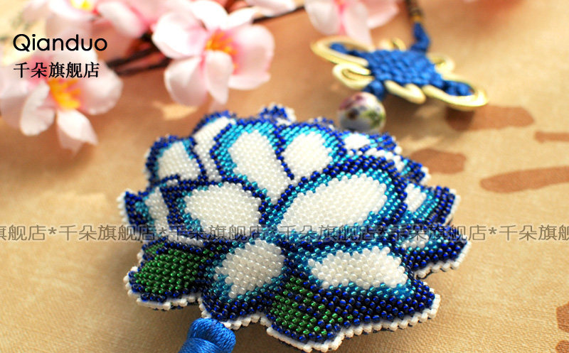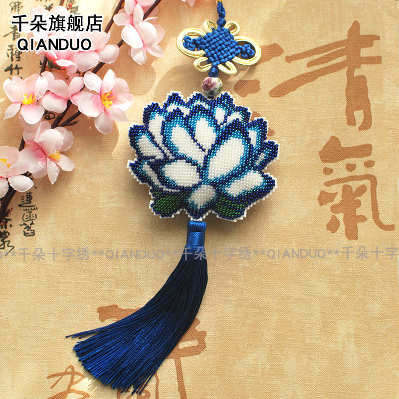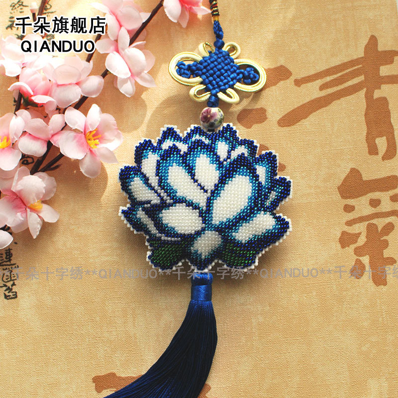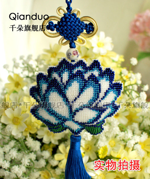 淘宝千朵印花满珠绣十字绣套件车饰车挂蓝色莲花简单自己绣材料包
