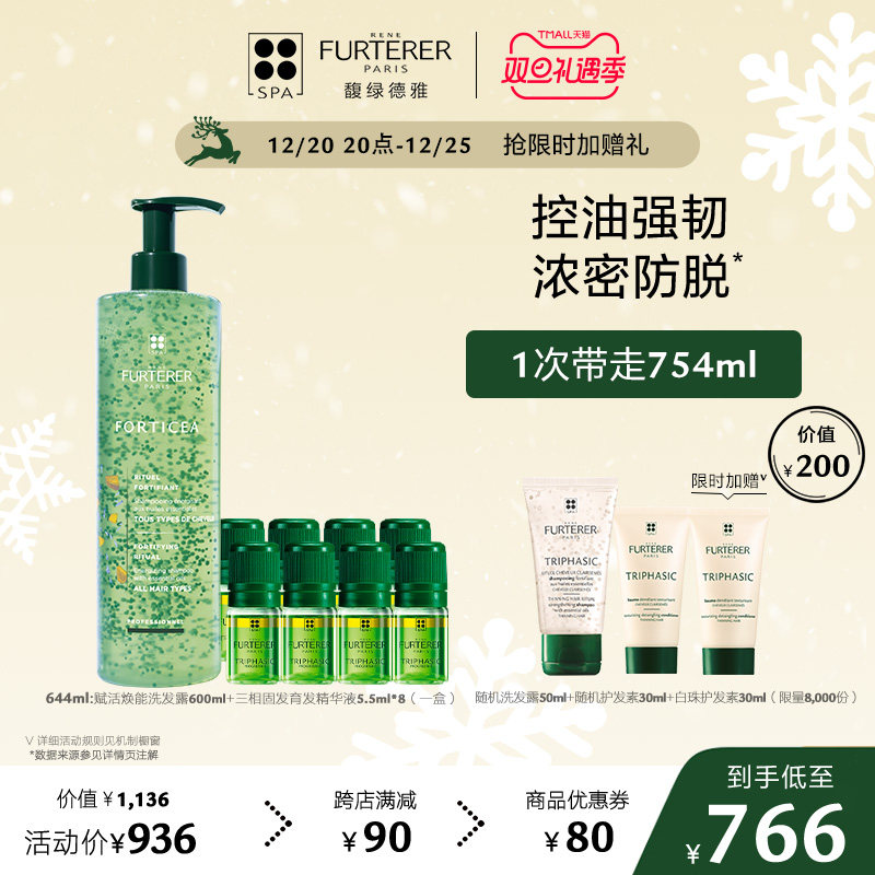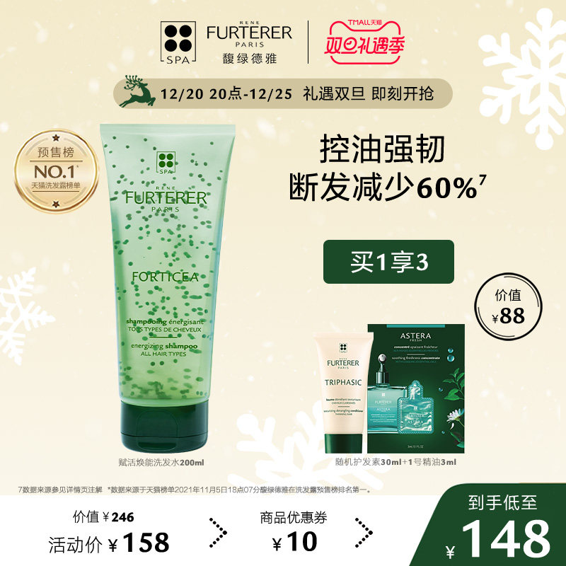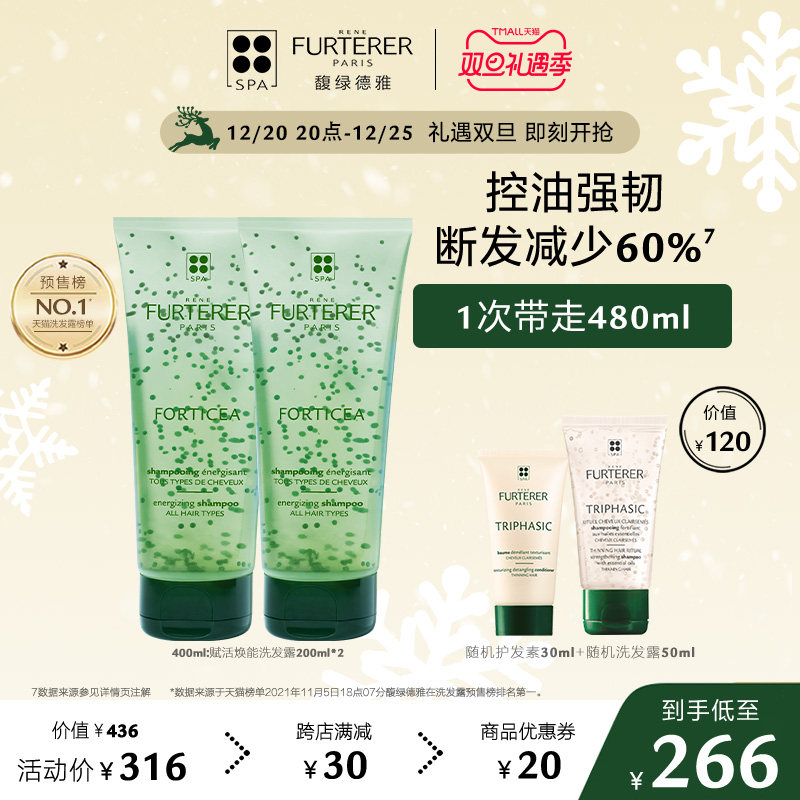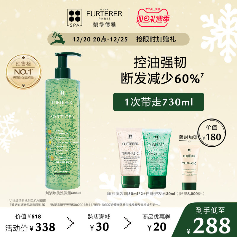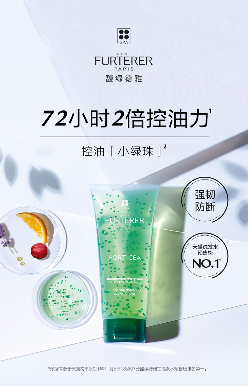天猫【双旦立抢】馥绿德雅小绿珠控油洗发水深层清洁强韧防断无硅油