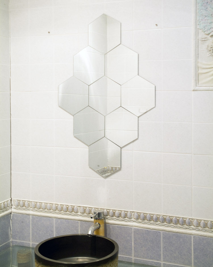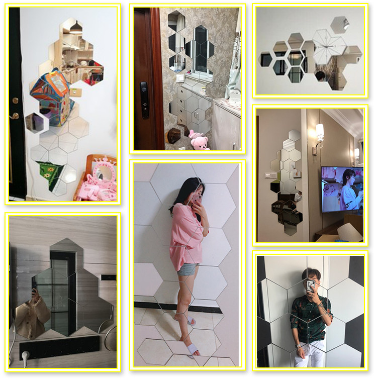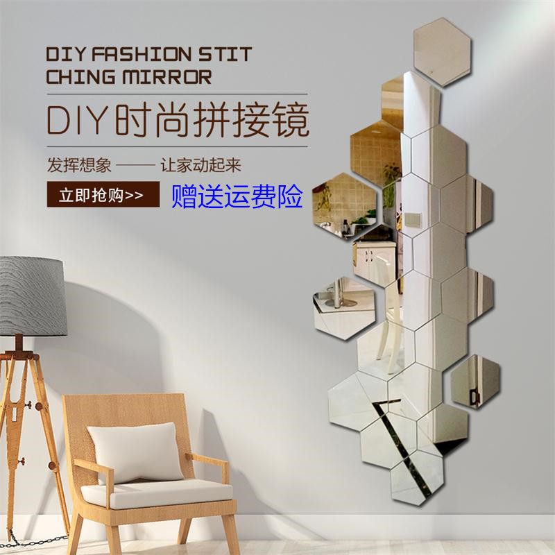 淘宝简约网红试衣镜子贴墙拼接全身穿衣镜自粘六角镜片化妆装饰背景墙