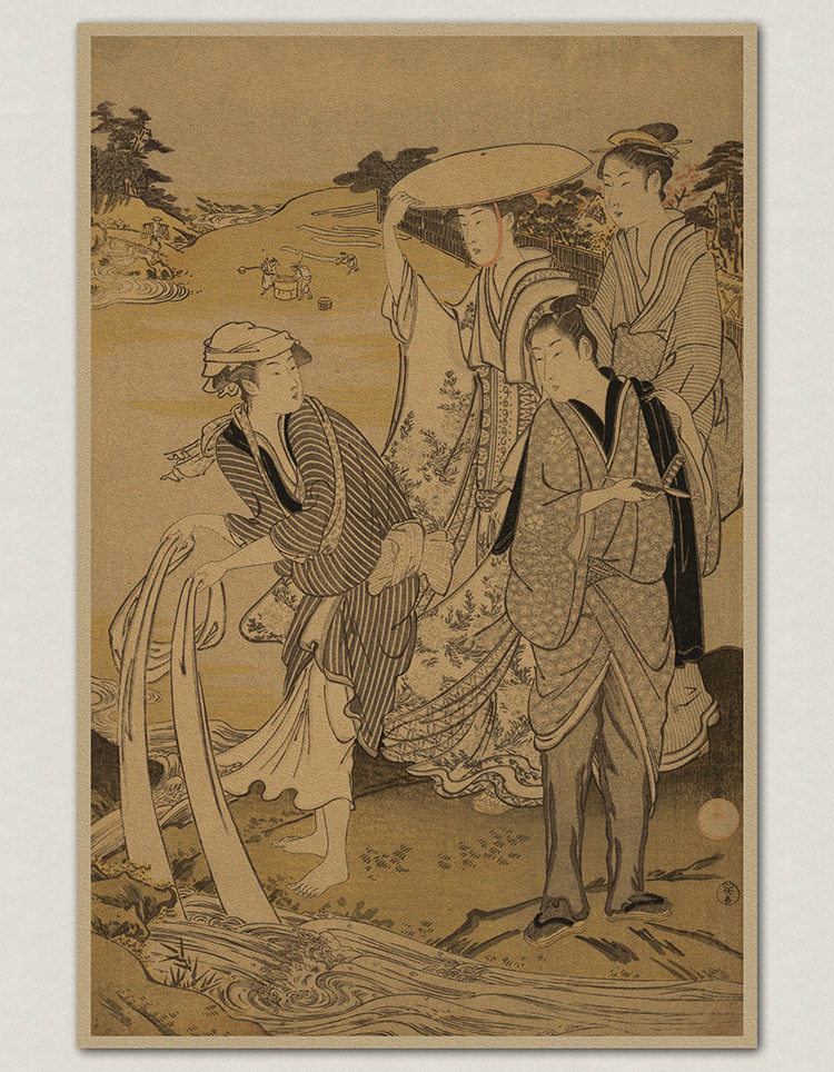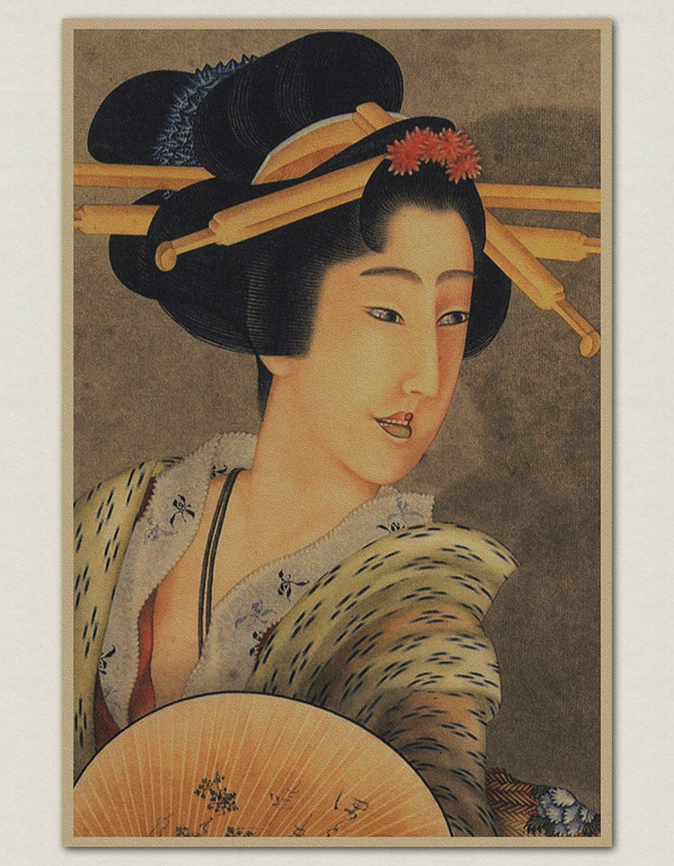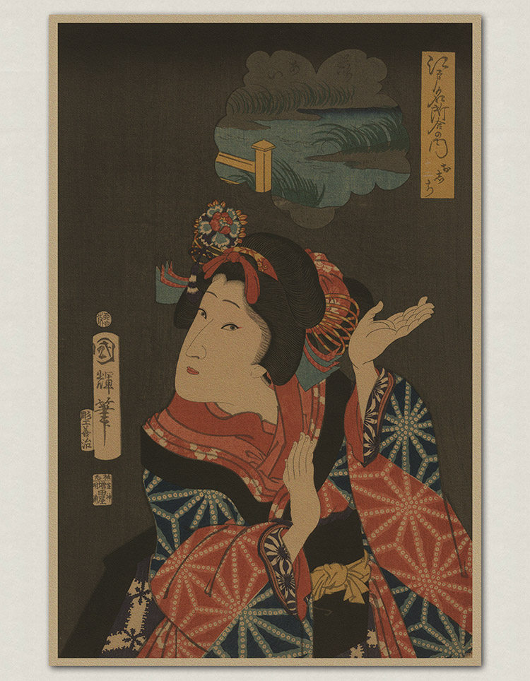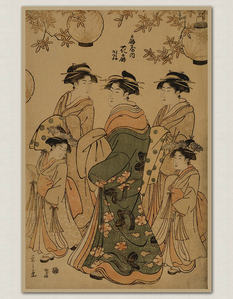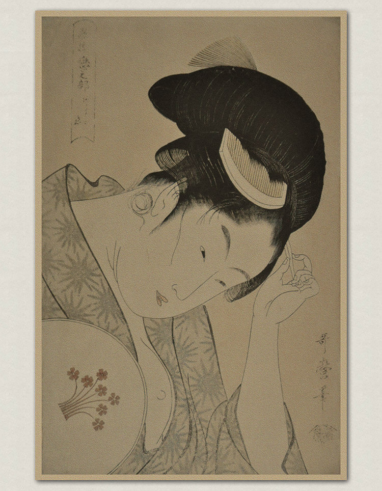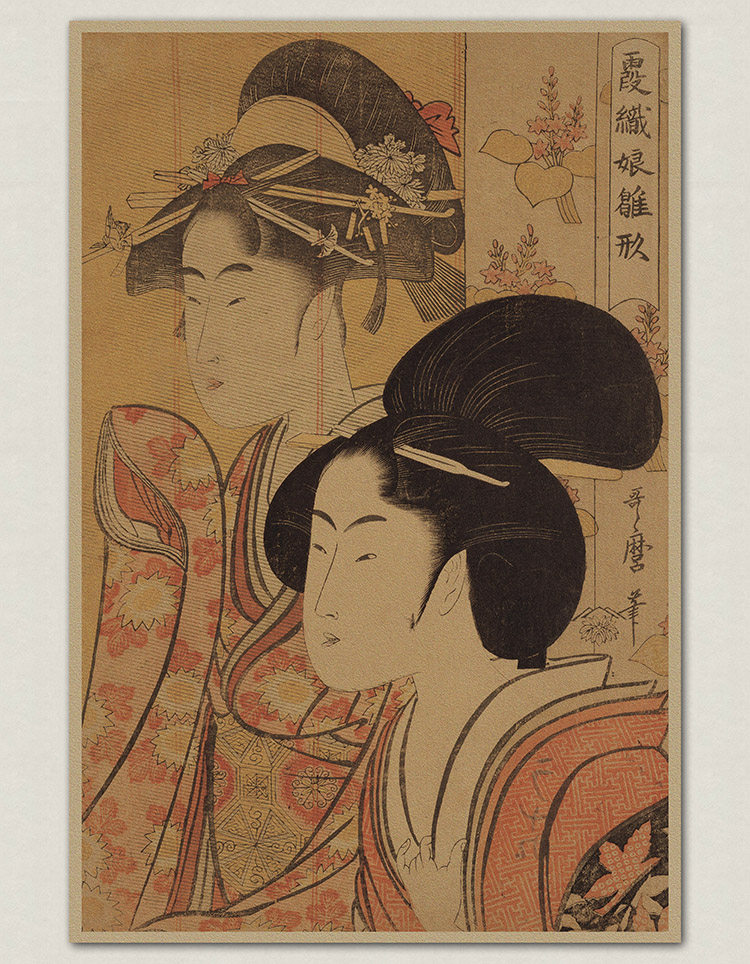淘宝浮世绘 侍女图 日式风格 复古牛皮纸海报 日本料理酒吧装饰挂贴画