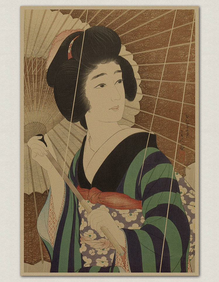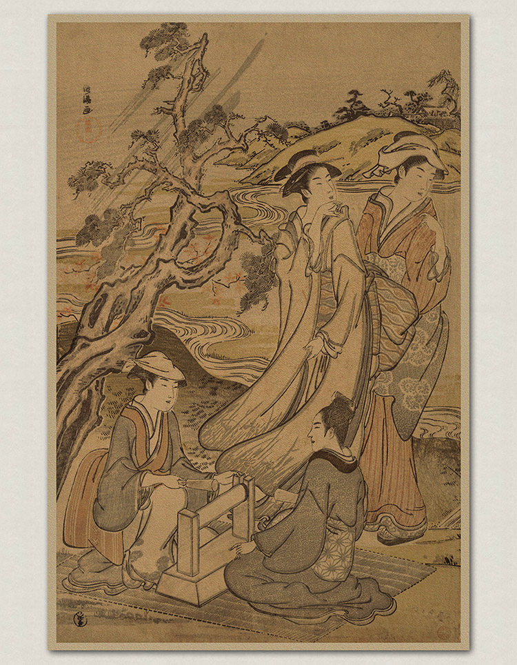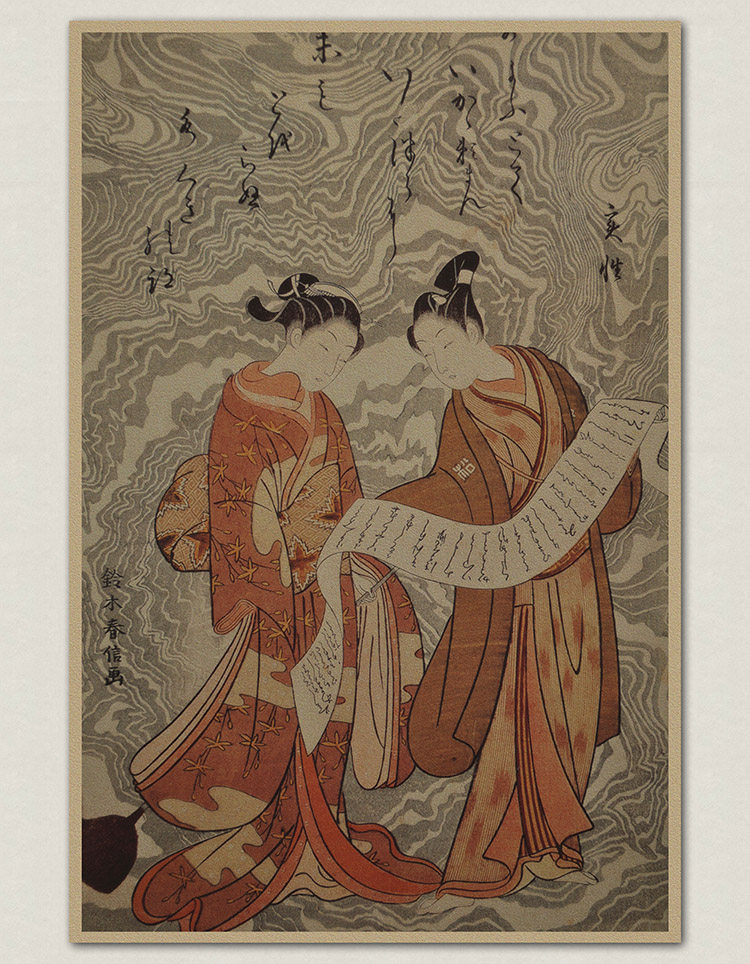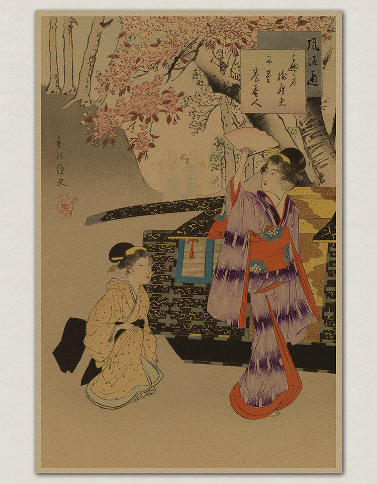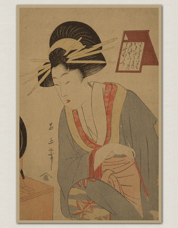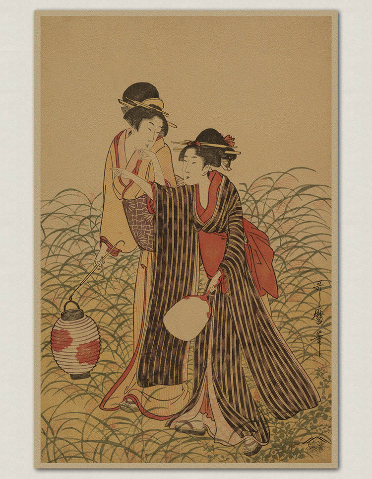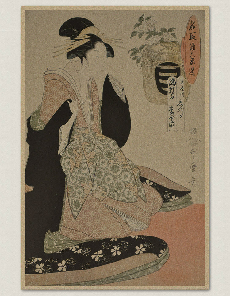 淘宝浮世绘 侍女图 日式风格 复古牛皮纸海报 日本料理酒吧装饰挂贴画