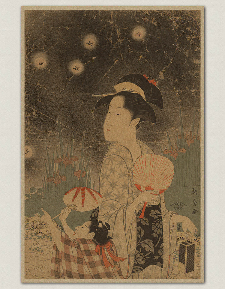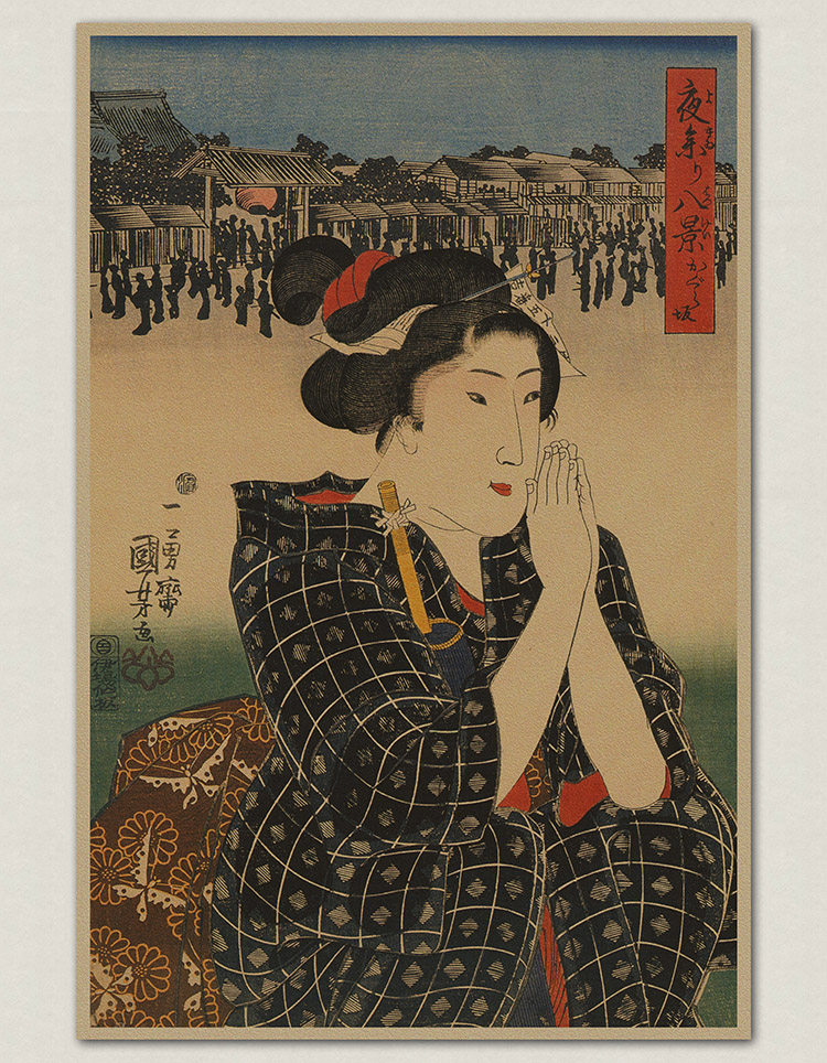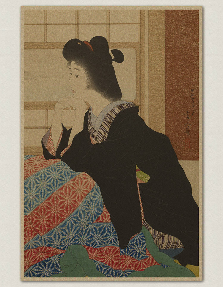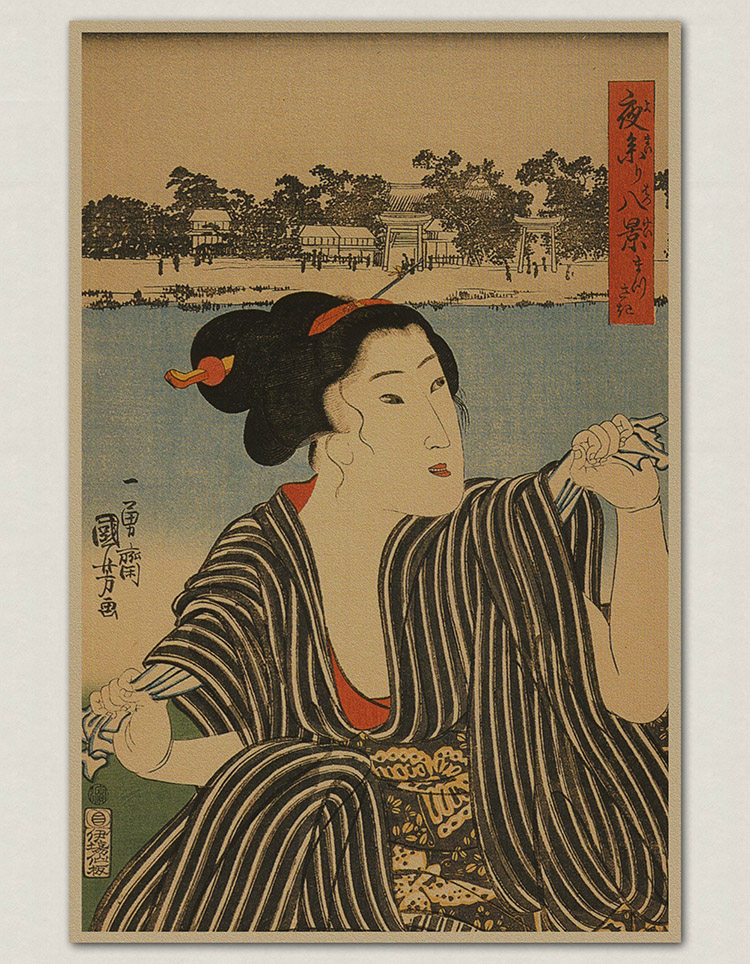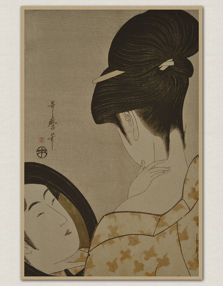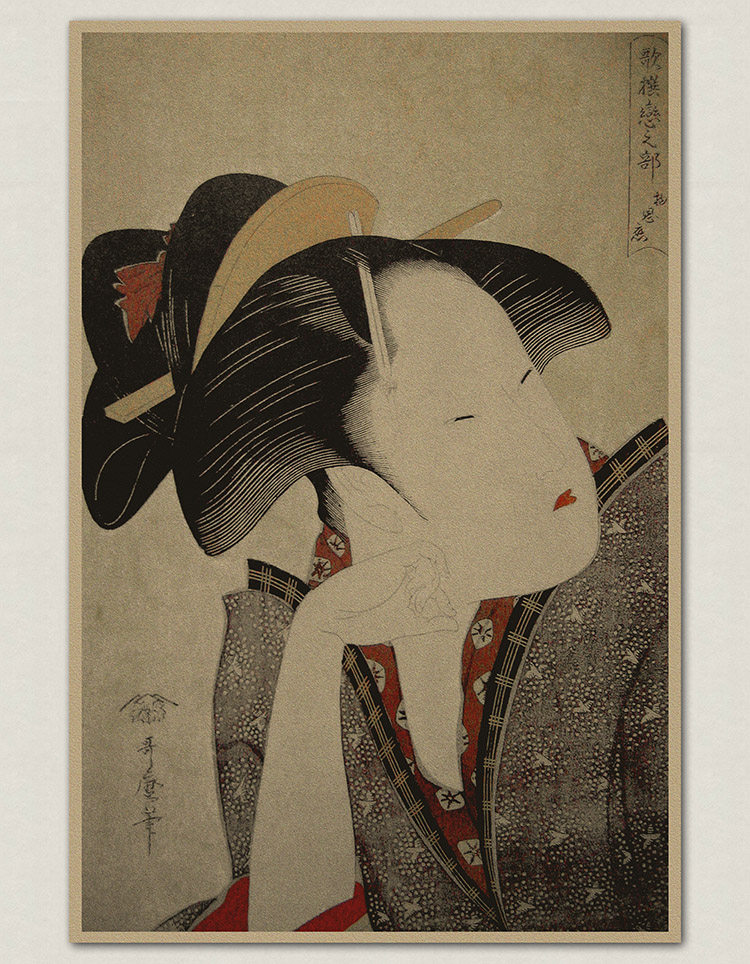 淘宝浮世绘 侍女图 日式风格 复古牛皮纸海报 日本料理酒吧装饰挂贴画