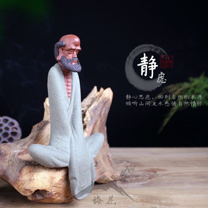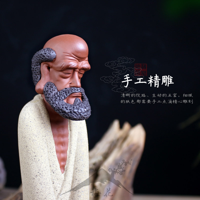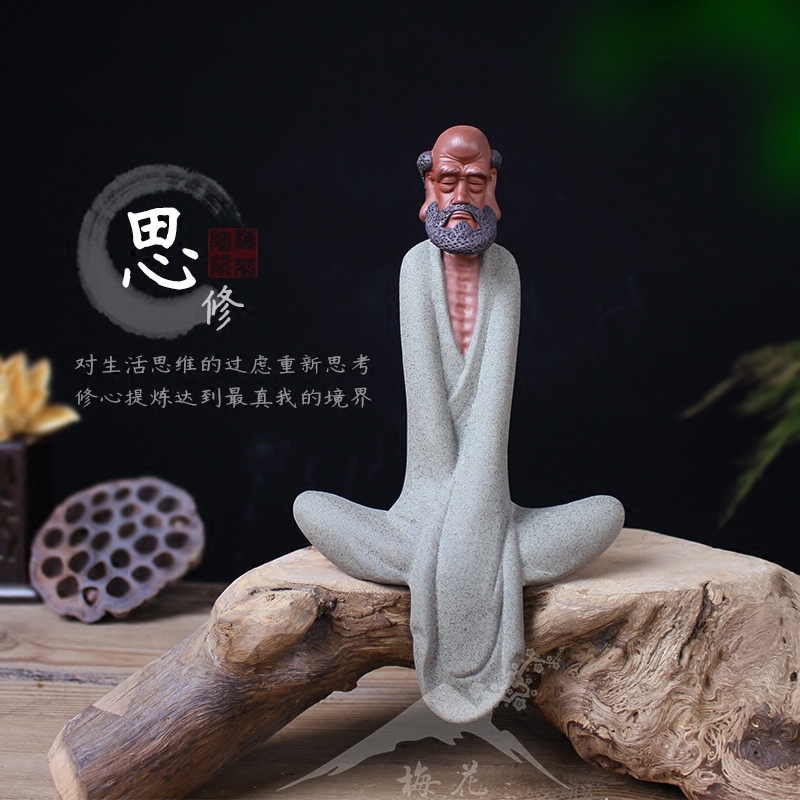 淘宝陶瓷达摩摆件禅意 紫砂佛像装饰工艺品 客厅博古架人物根雕家居饰