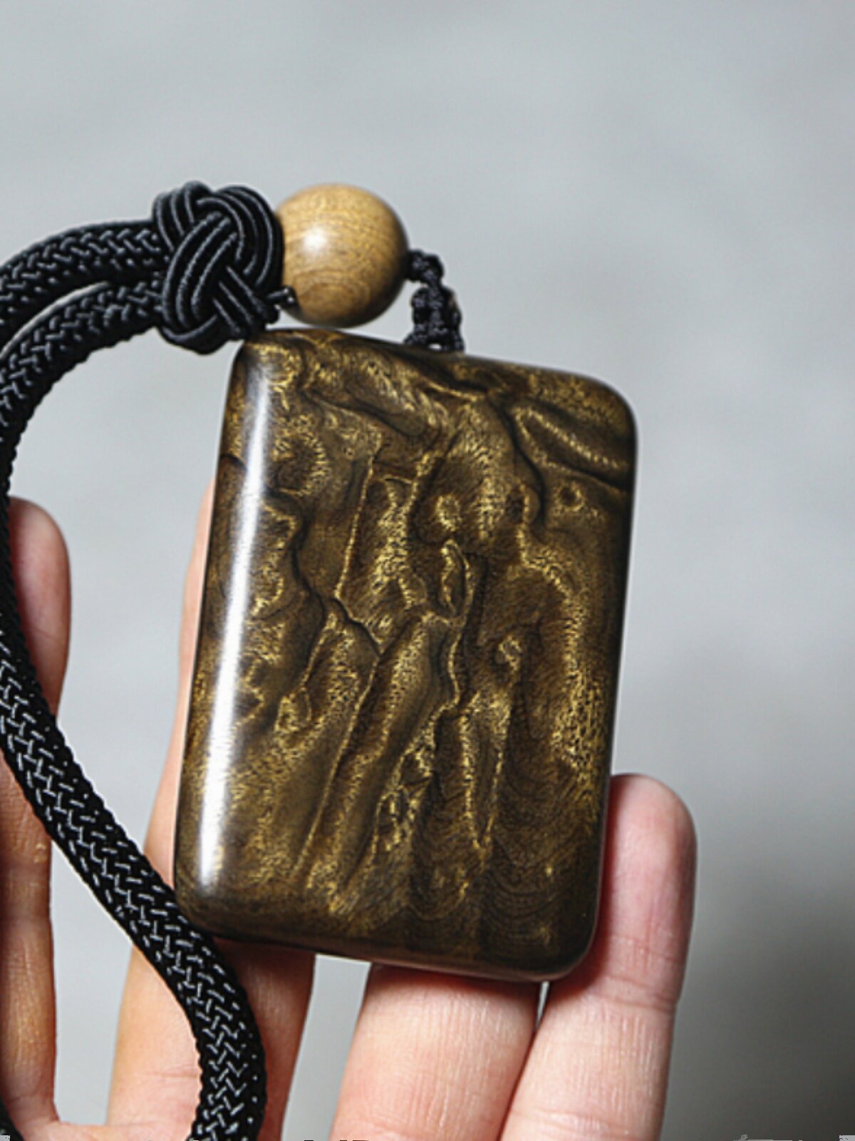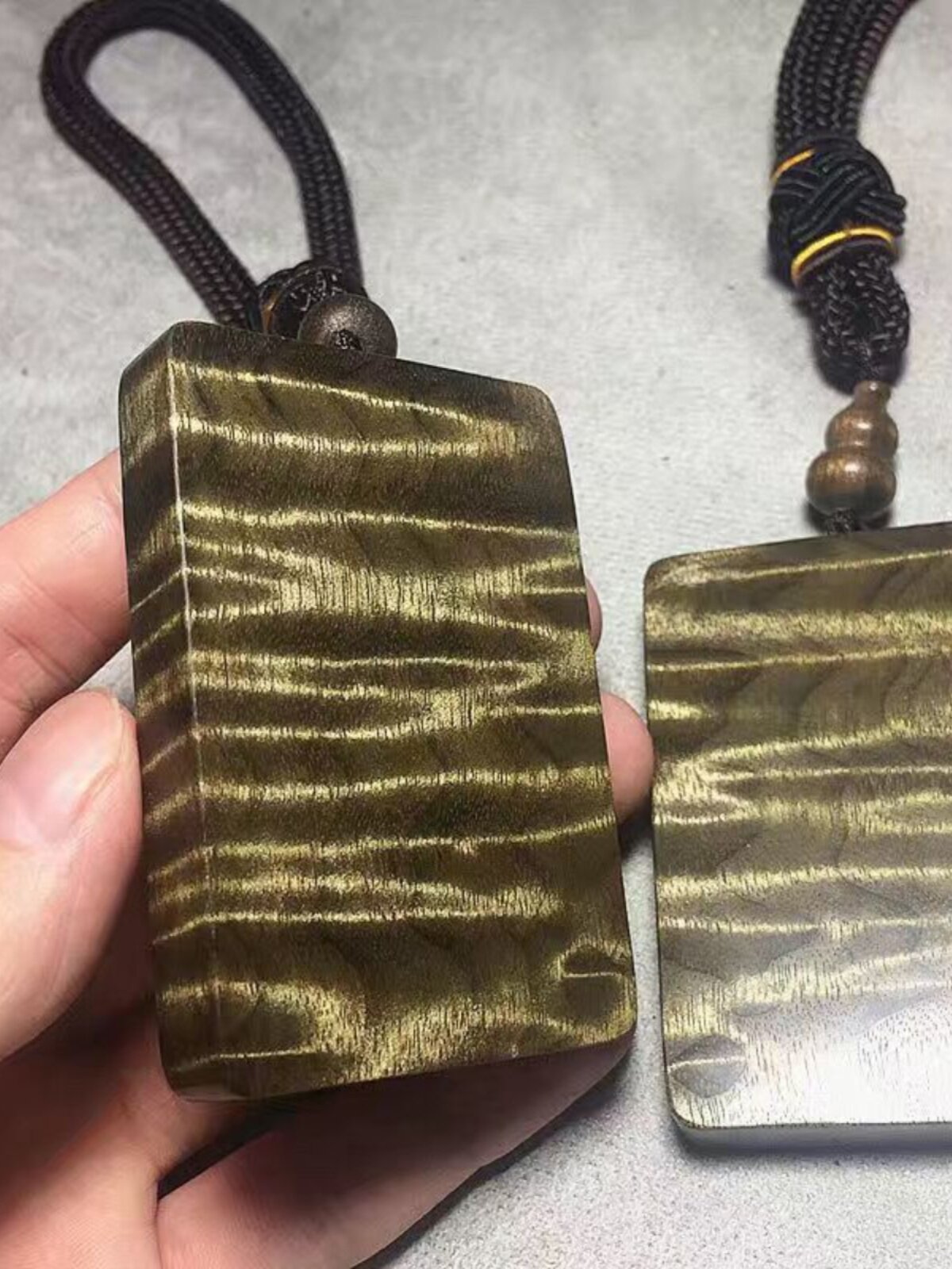 淘宝金丝楠平安无事牌阴沉木小叶桢楠乌木绿料挂件金丝水波手把件车挂