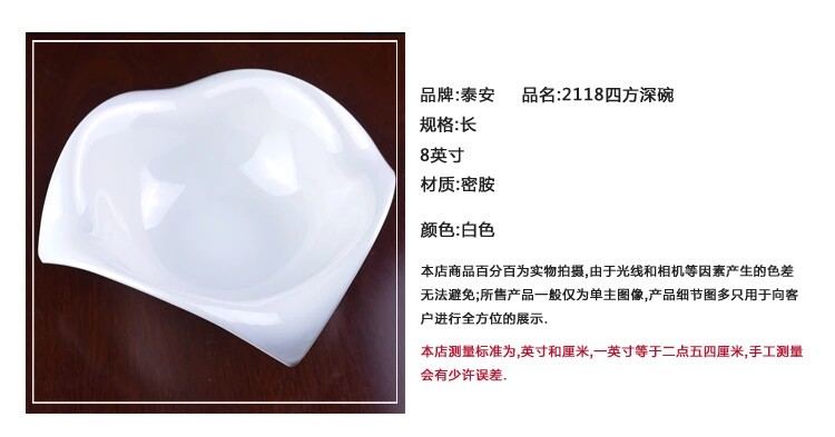 淘宝创意密胺餐具中式纯白四方深碗火锅店自助餐厅商用饭碗汤碗油碟碗