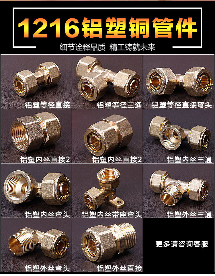 淘宝4分铝塑管接头配件1216铝塑管铜接头 直接弯头三通加厚全铜管件