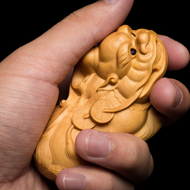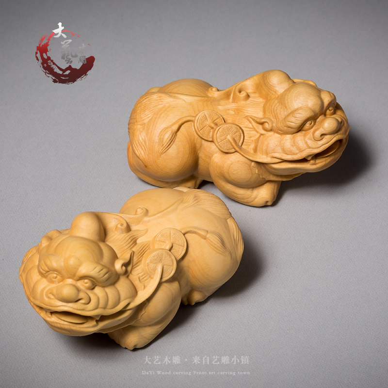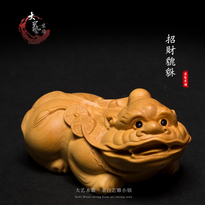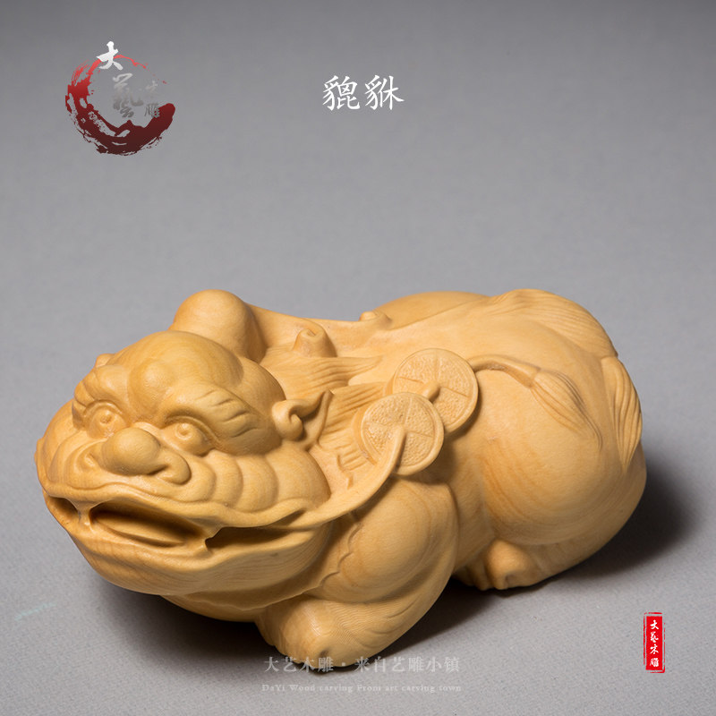 淘宝黄杨木雕貔貅实木随身把玩文玩手把件雕刻工艺品中式客厅皮丘摆件