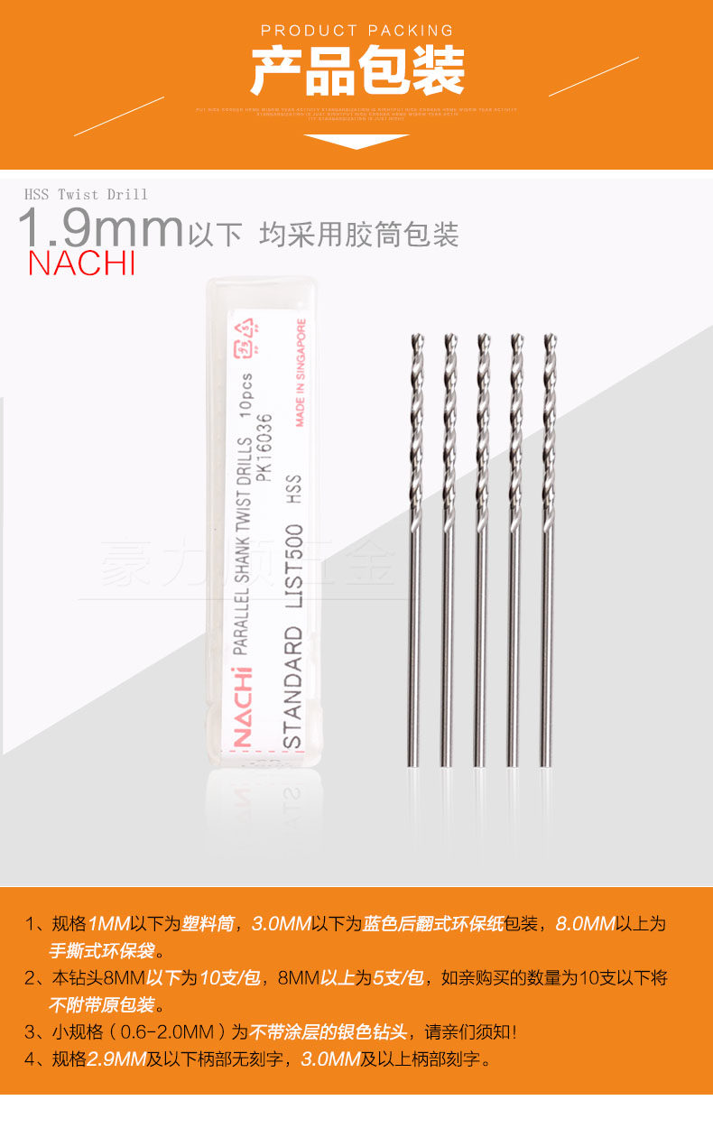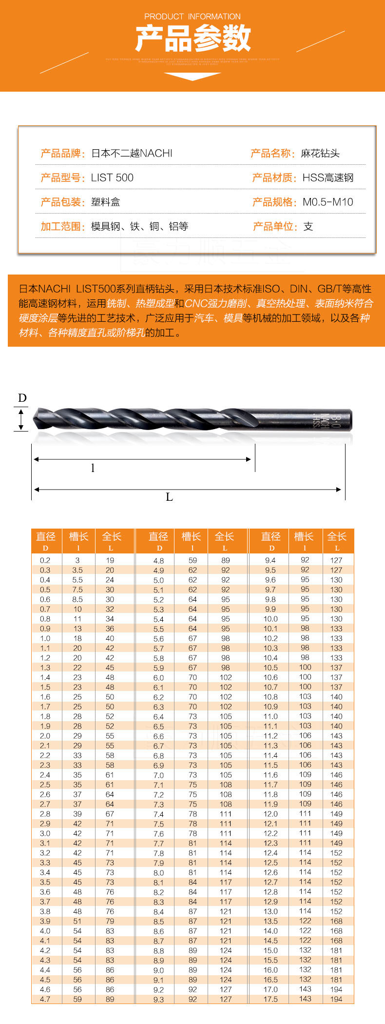 淘宝正品日本不二越NACHI LIST500高速钢直柄麻花钻头钻咀0.5-14mm