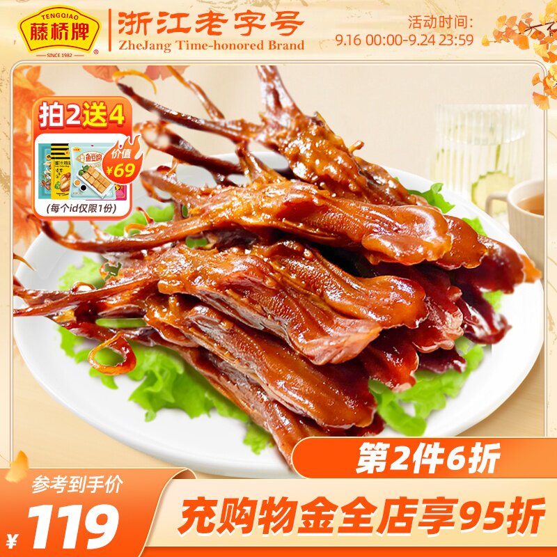 淘宝藤桥牌精品大鸭舌 温州特产小吃熟食 卤味休闲零食即食净重鸭舌头