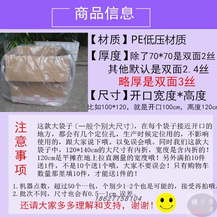 淘宝塑料袋子透明大号收纳内膜袋防潮防尘纸箱薄膜袋超大低压PE平口袋