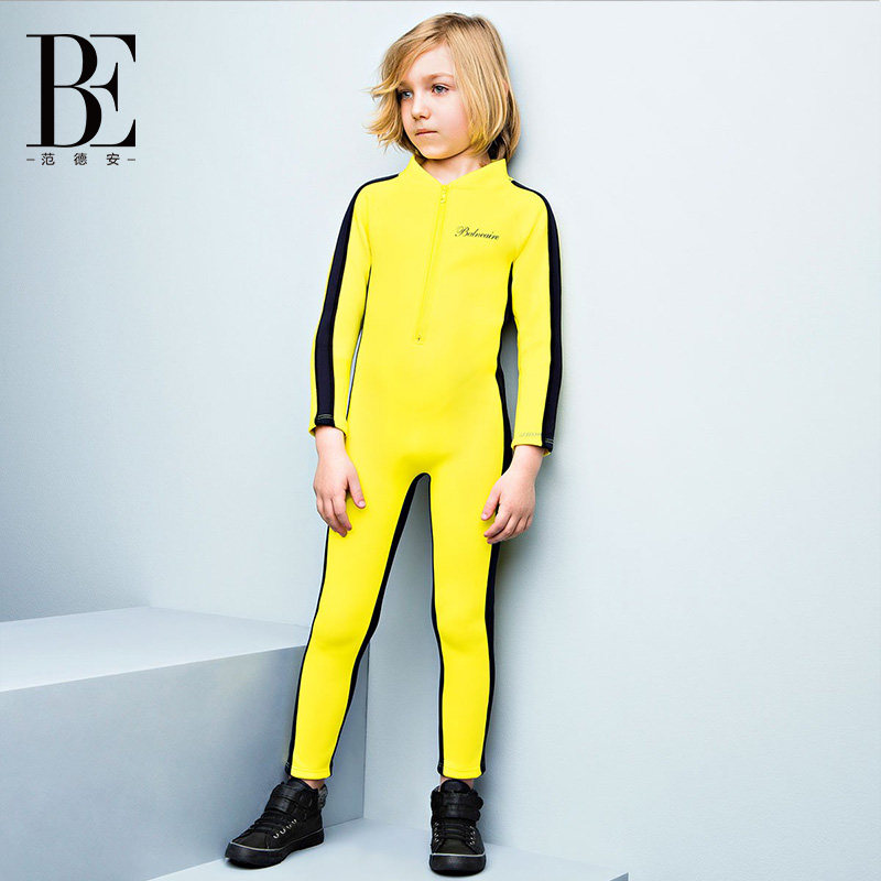淘宝BE范德安长袖防晒温泉男女童泳衣中大童可爱儿童平角连体学生泳装