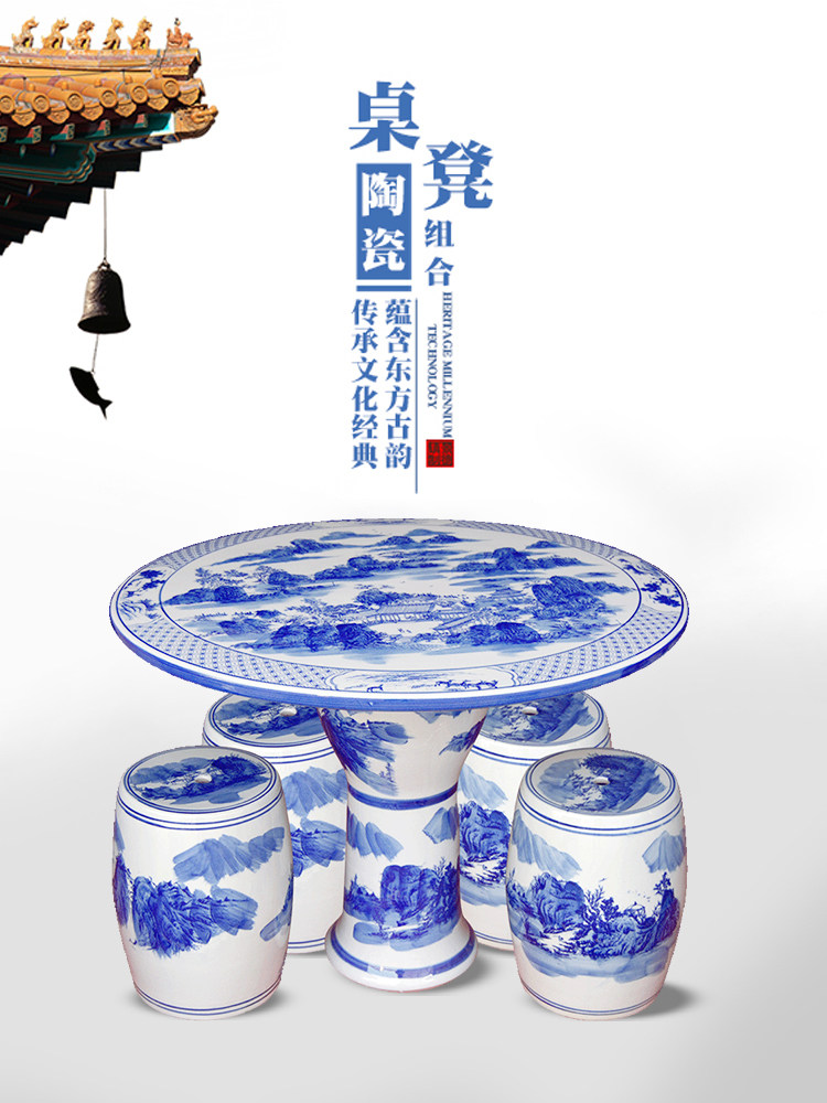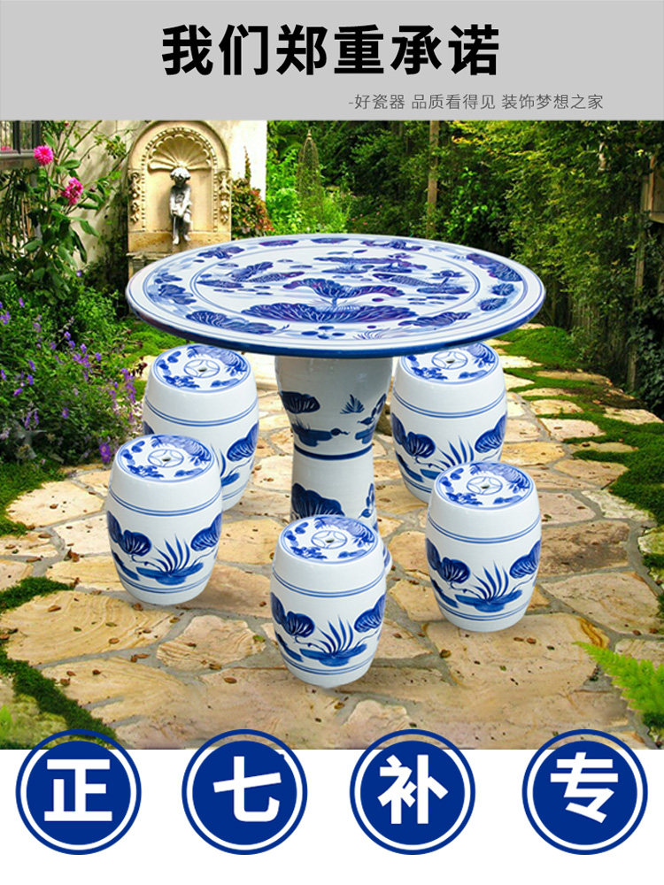 淘宝景德镇陶瓷桌子凳子套装圆桌仿古青花瓷阳台装饰户外庭院花园桌椅