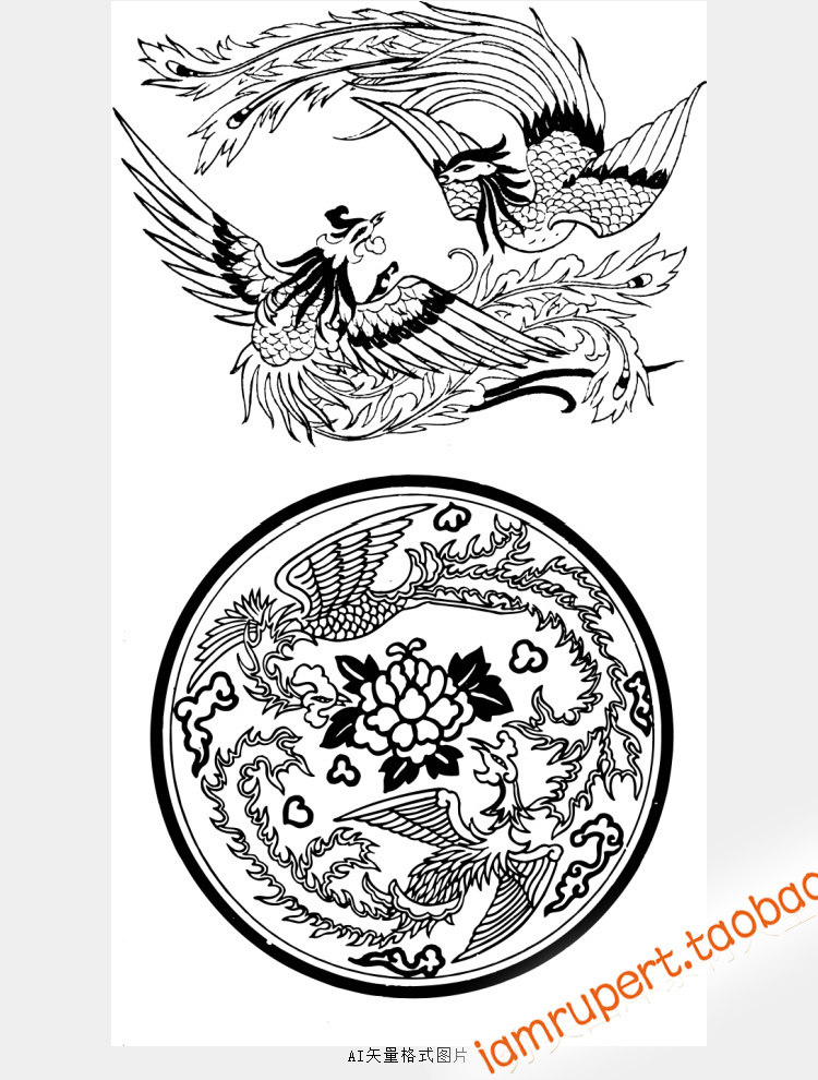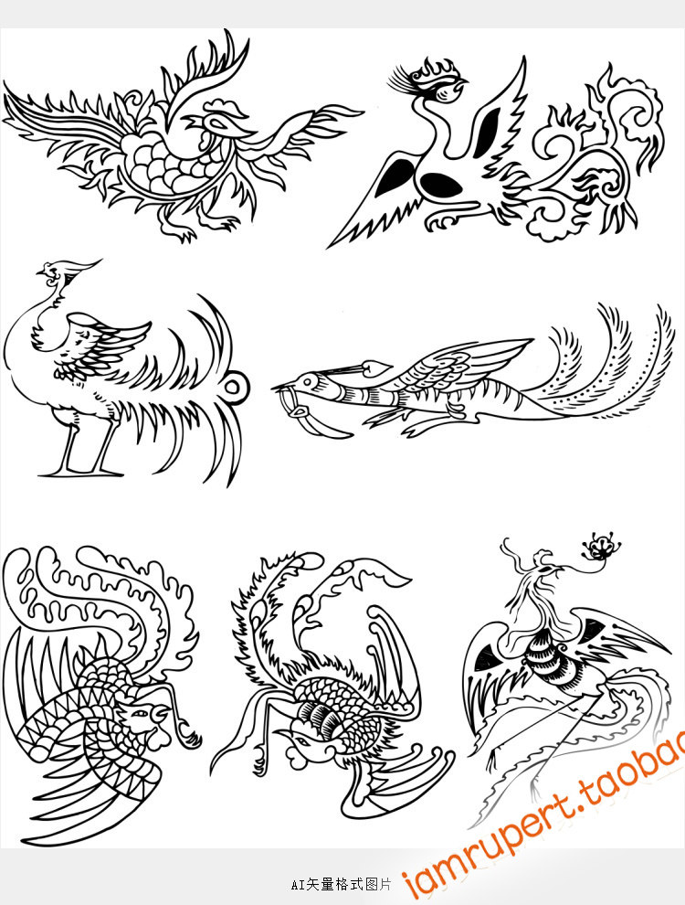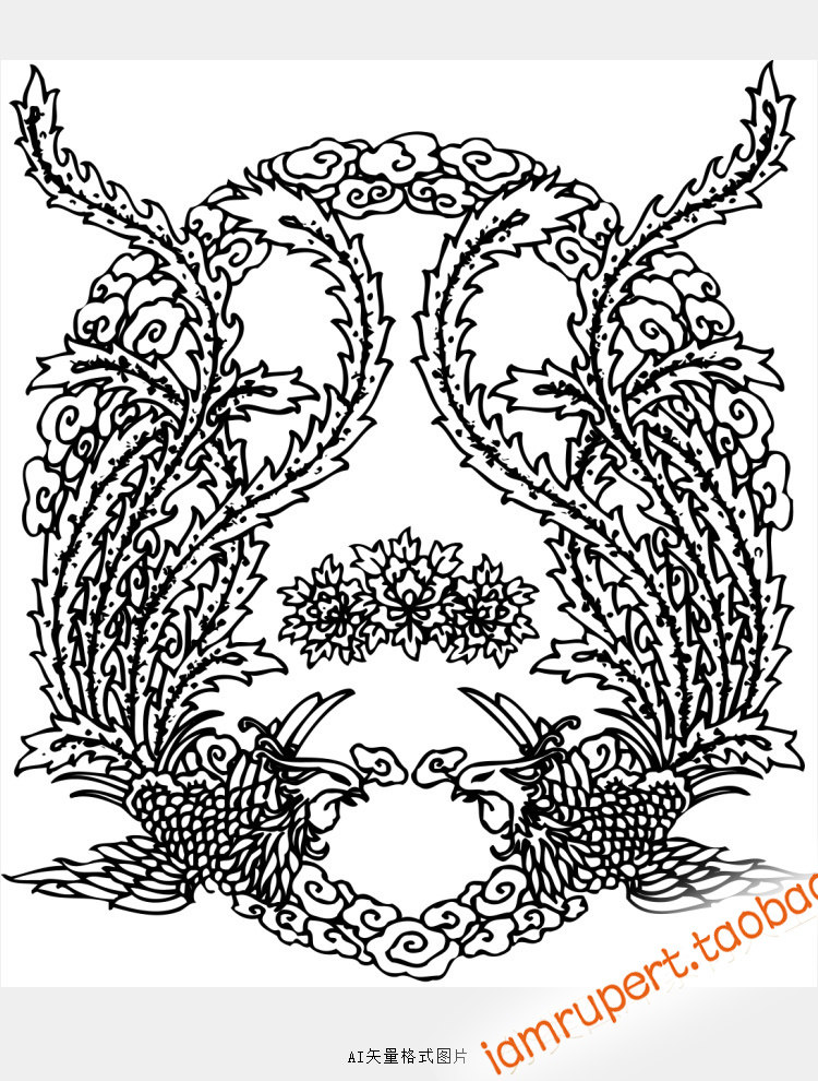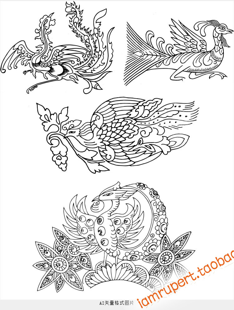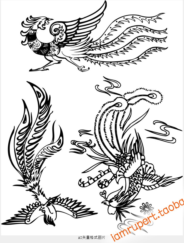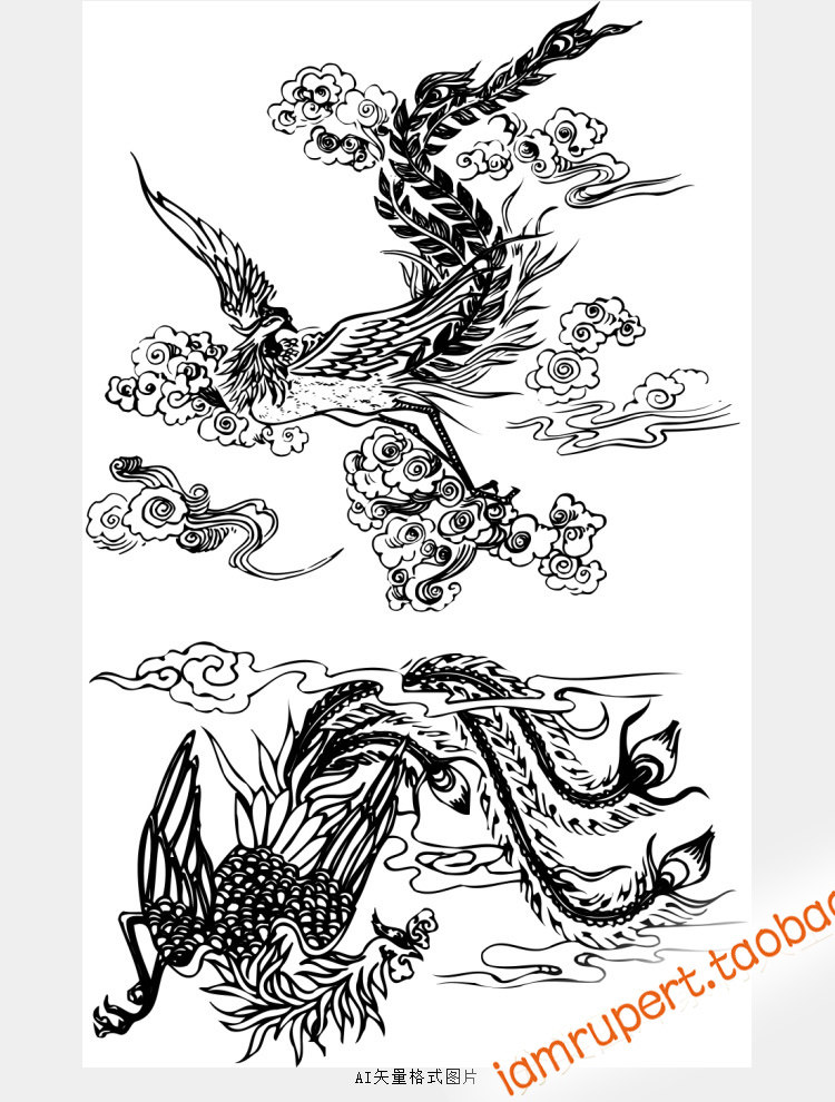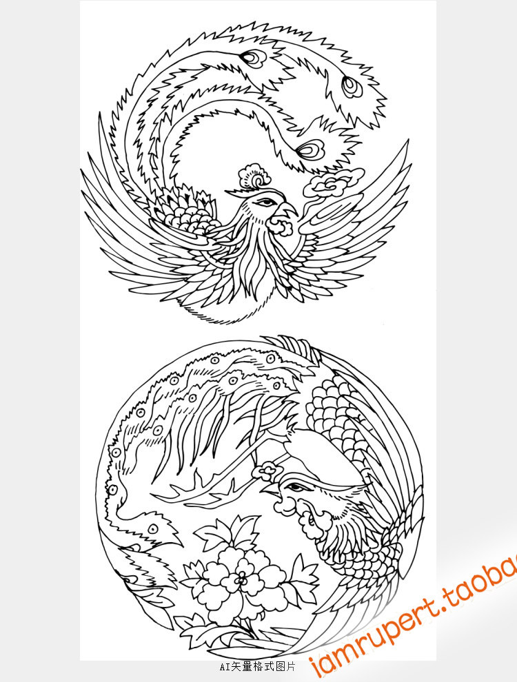 淘宝C2中国凤舞传统古典纹样凤凰剪纸绘画雕刻窗花图案形矢量图片素材