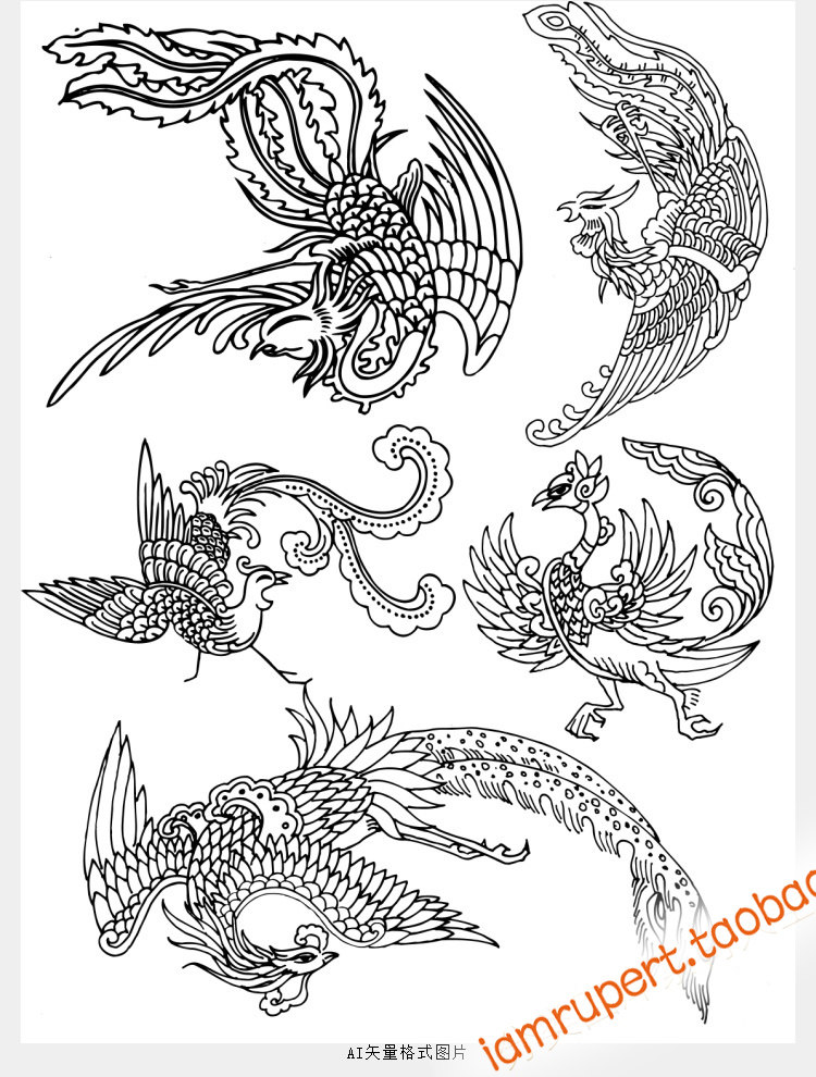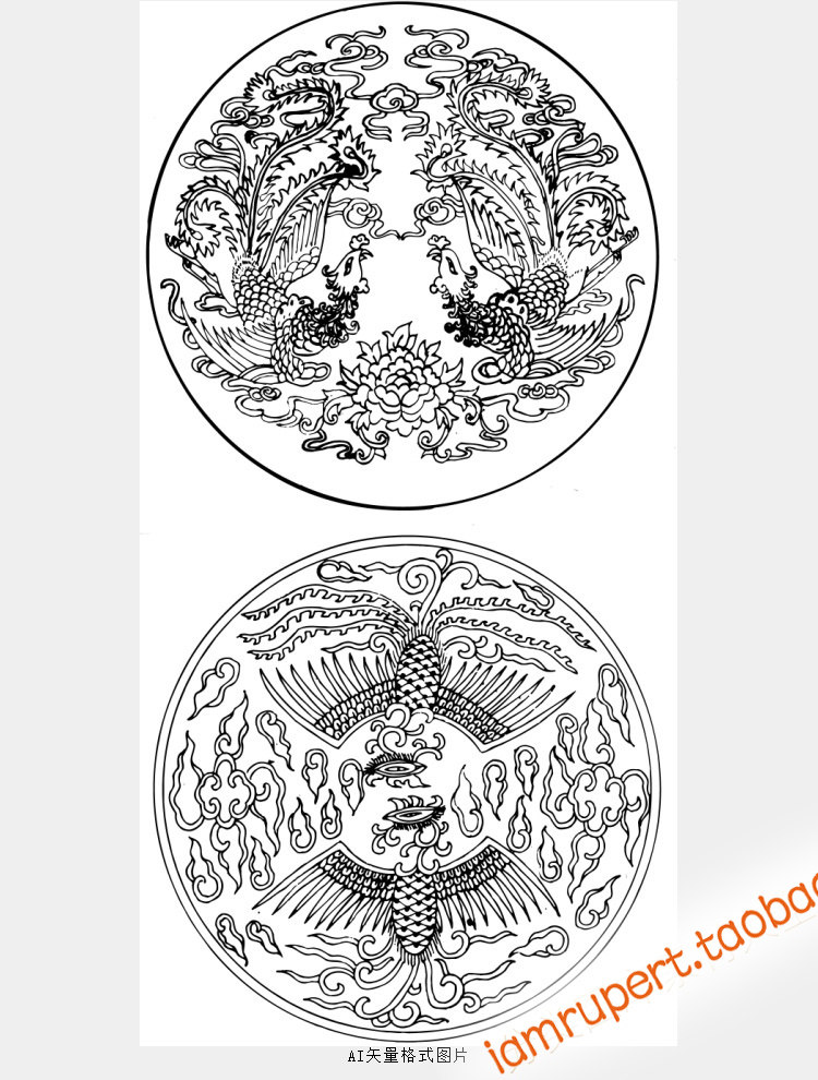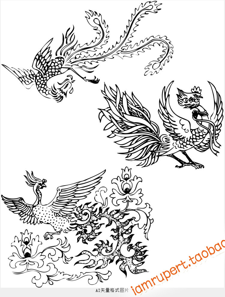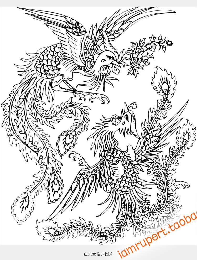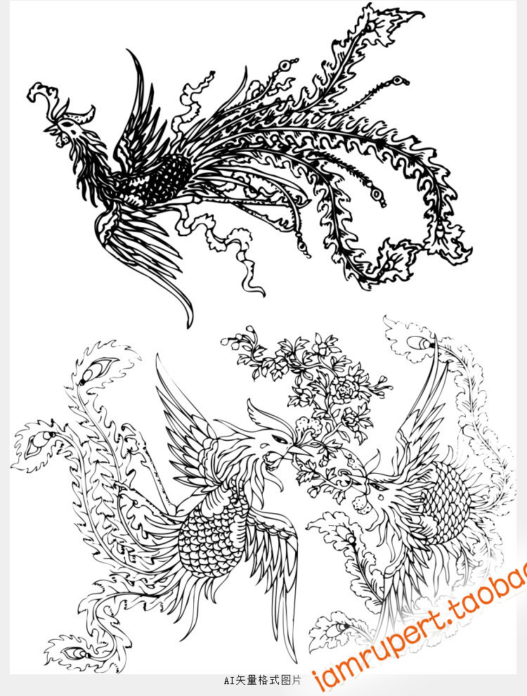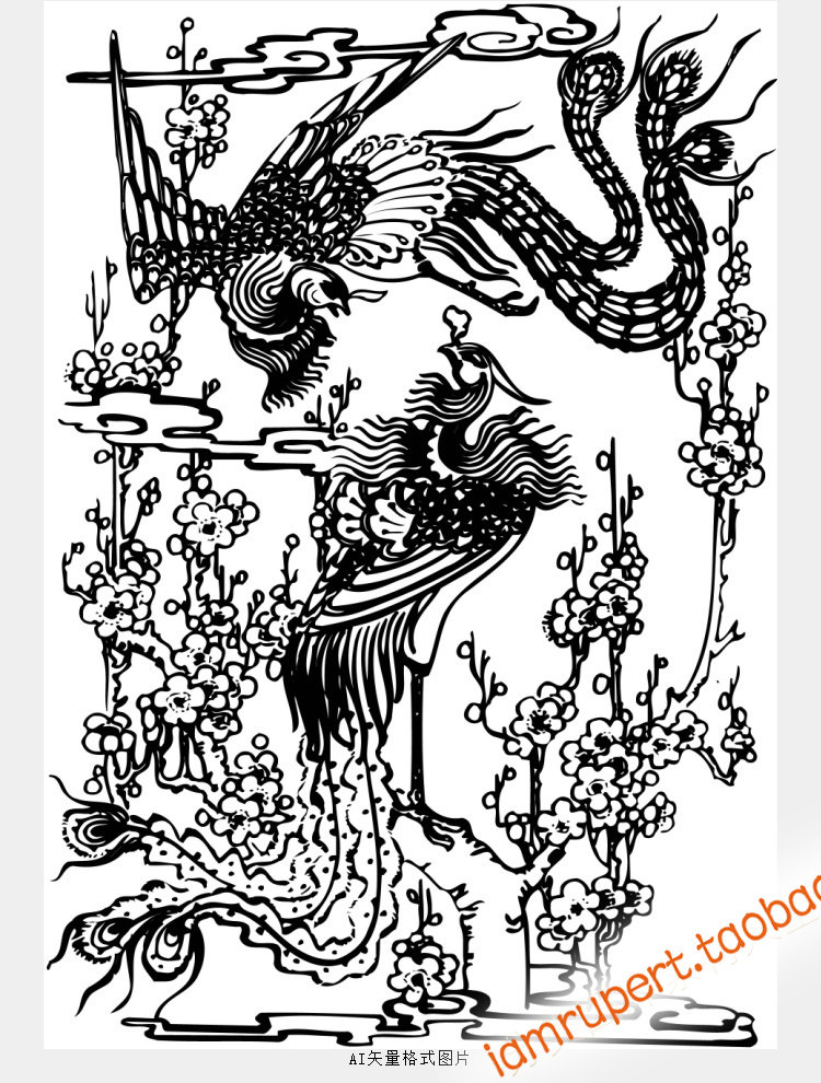 淘宝C2中国凤舞传统古典纹样凤凰剪纸绘画雕刻窗花图案形矢量图片素材