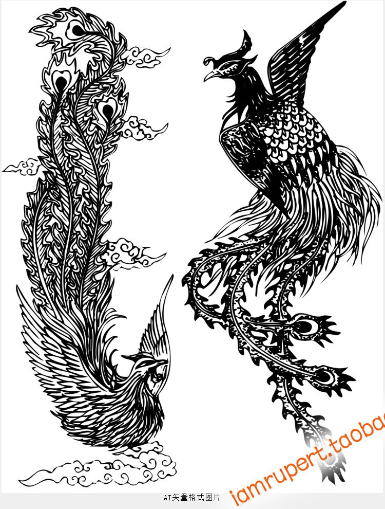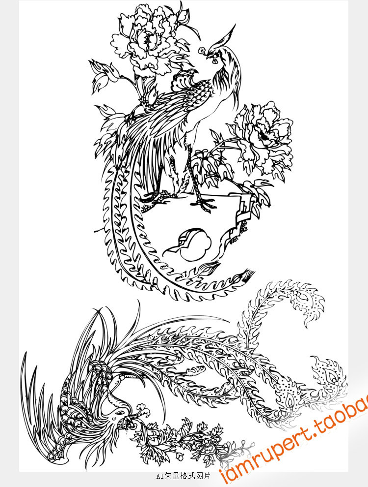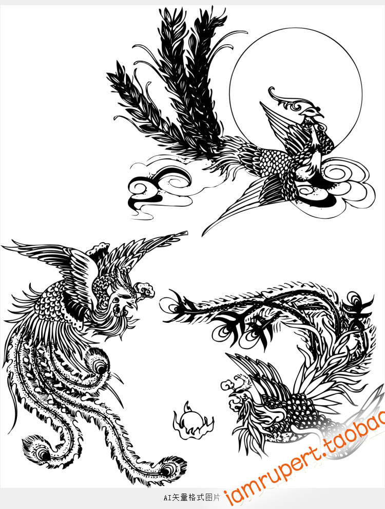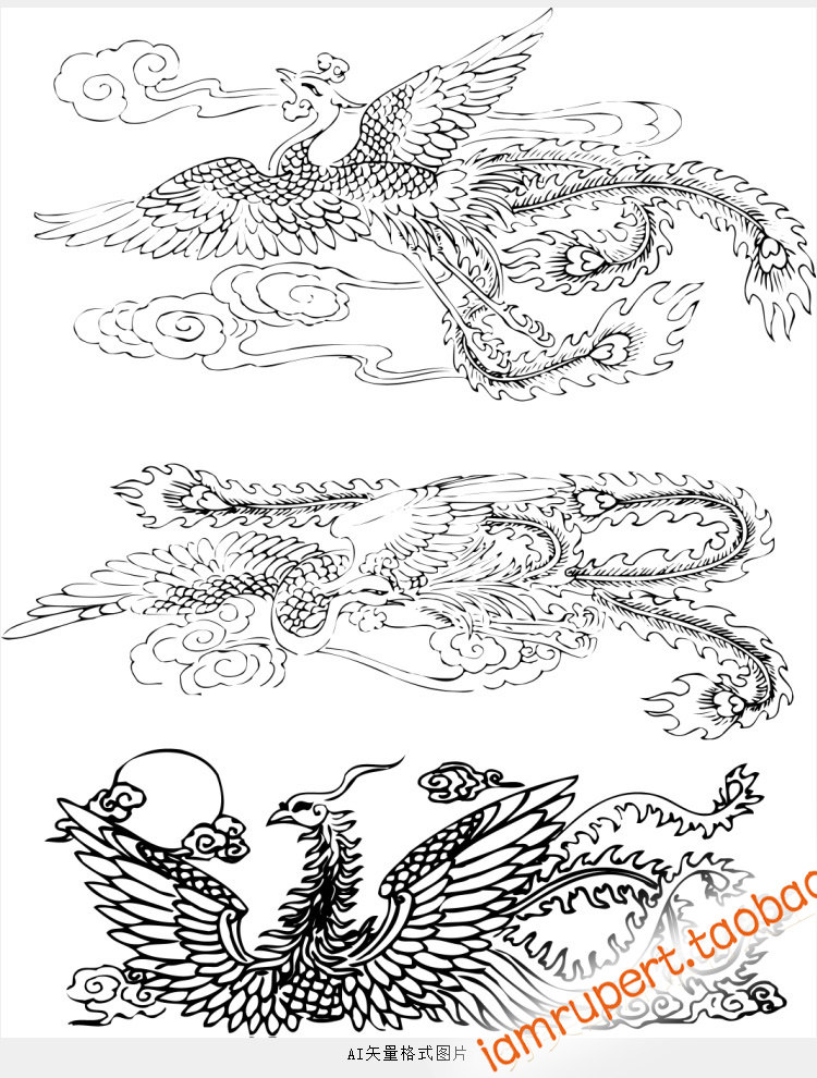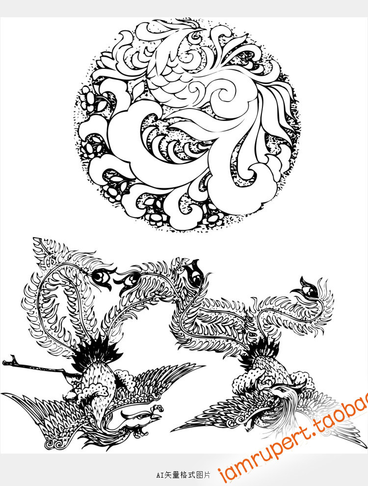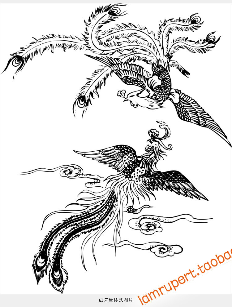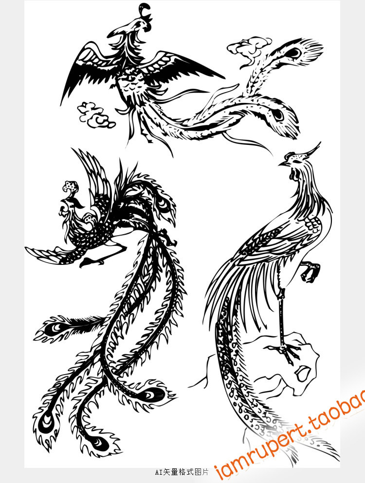 淘宝C2中国凤舞传统古典纹样凤凰剪纸绘画雕刻窗花图案形矢量图片素材