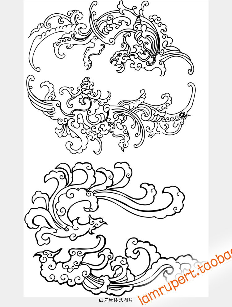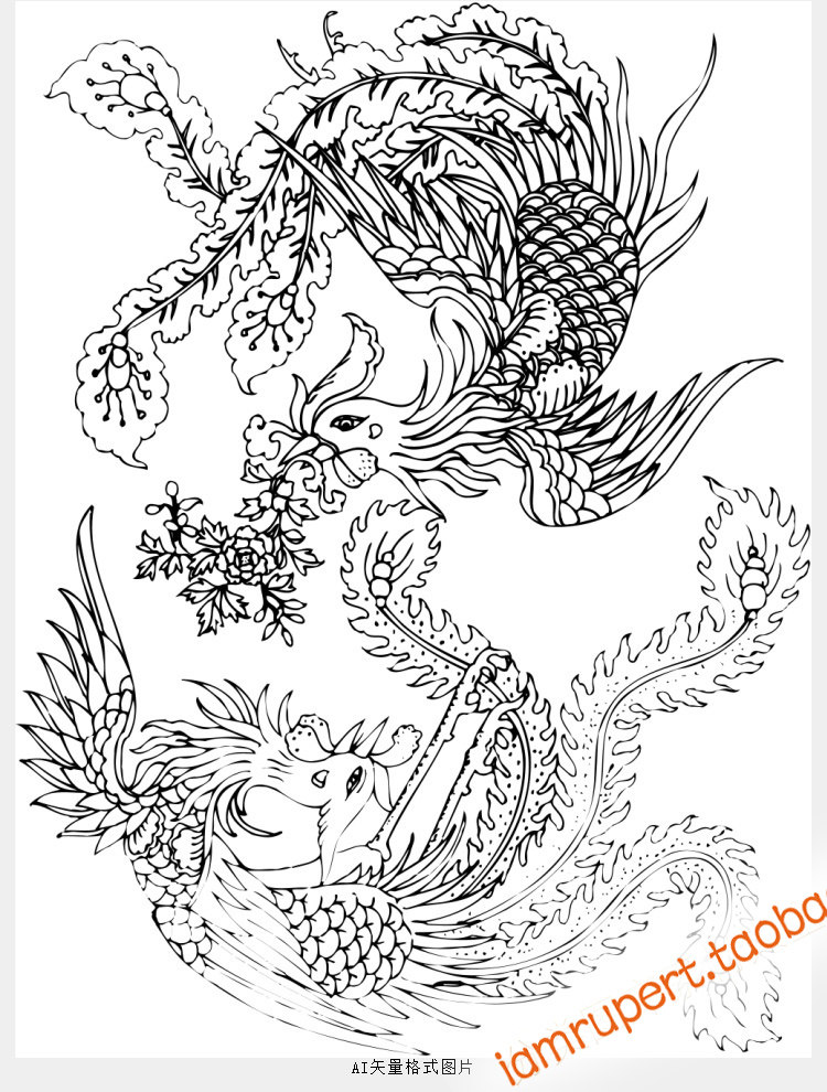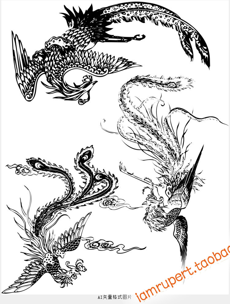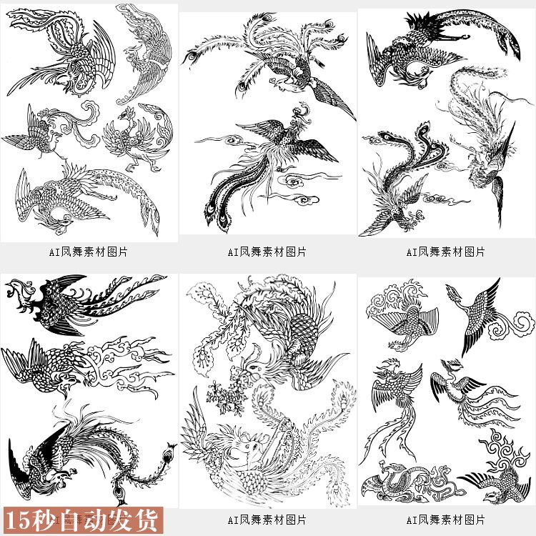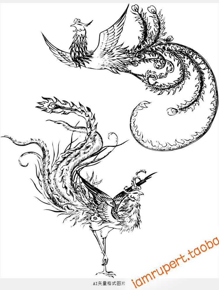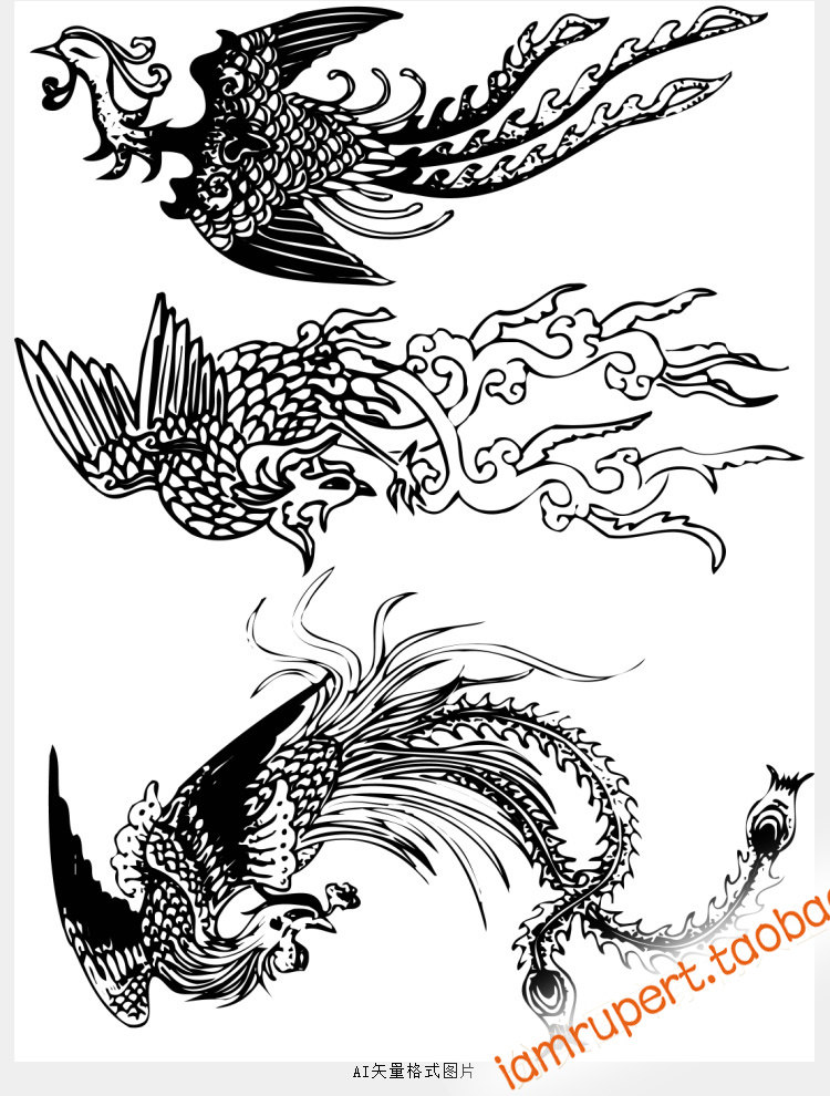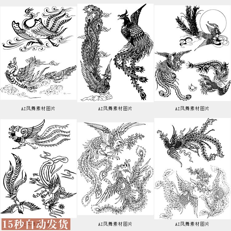 淘宝C2中国凤舞传统古典纹样凤凰剪纸绘画雕刻窗花图案形矢量图片素材