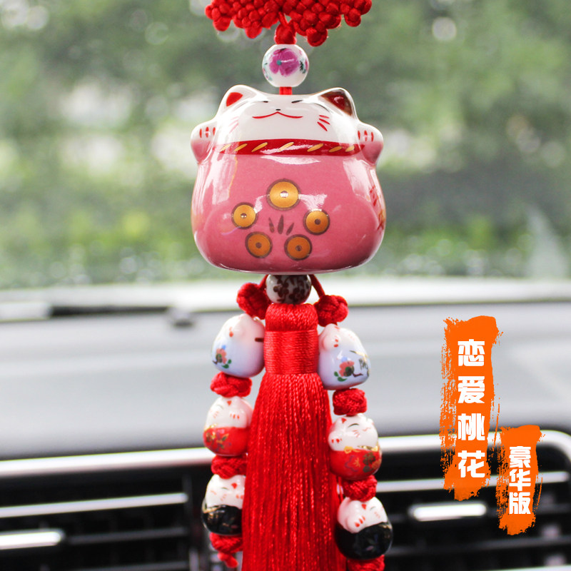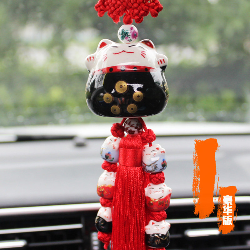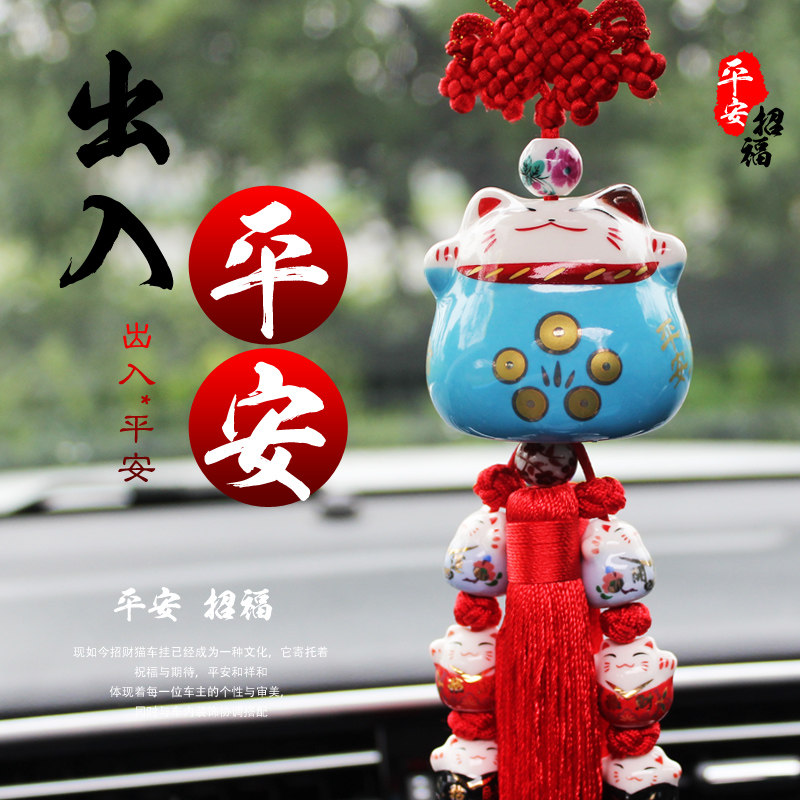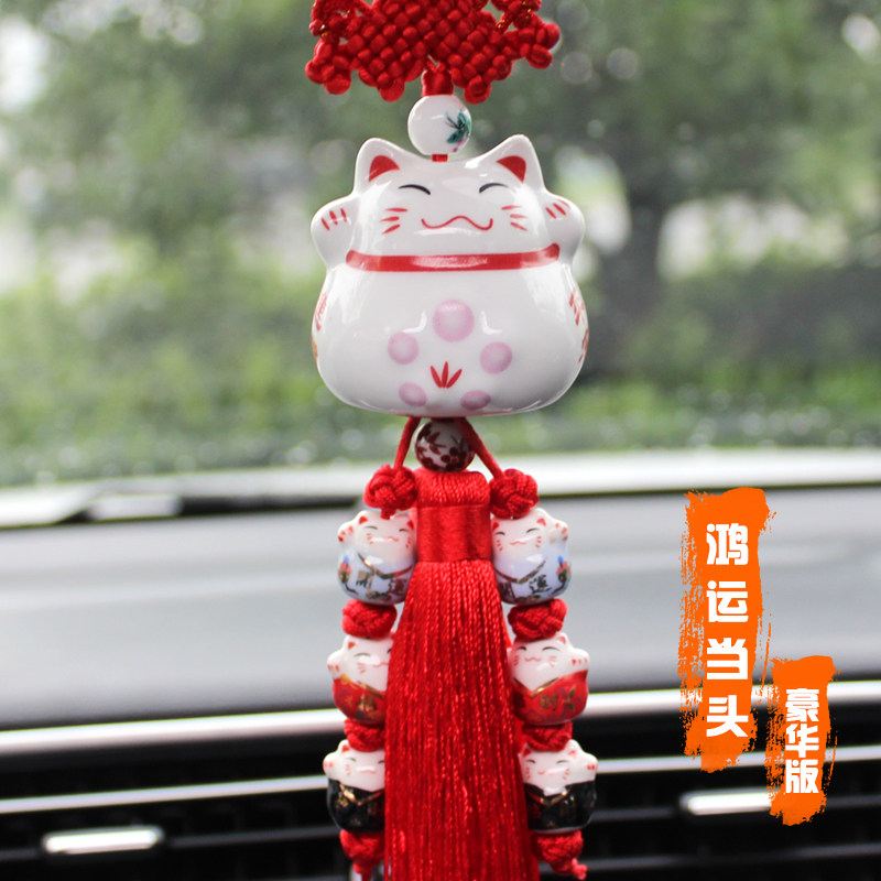 淘宝可爱招财猫车挂汽车后视镜挂件高档创意车载出入平安车内吊坠摆件