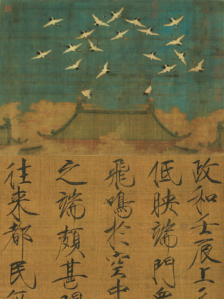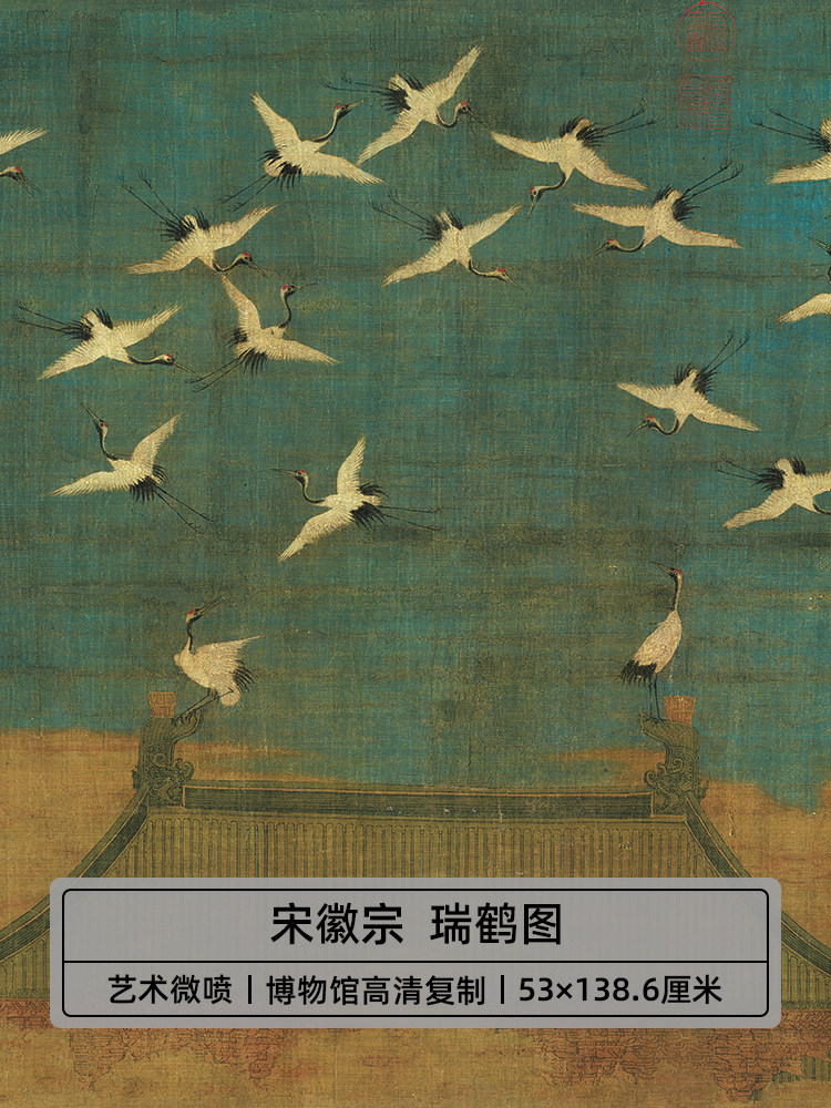 淘宝名画复制宋画宋徽宗赵佶瑞鹤图国画瘦金楷书微喷教学临摹装饰画