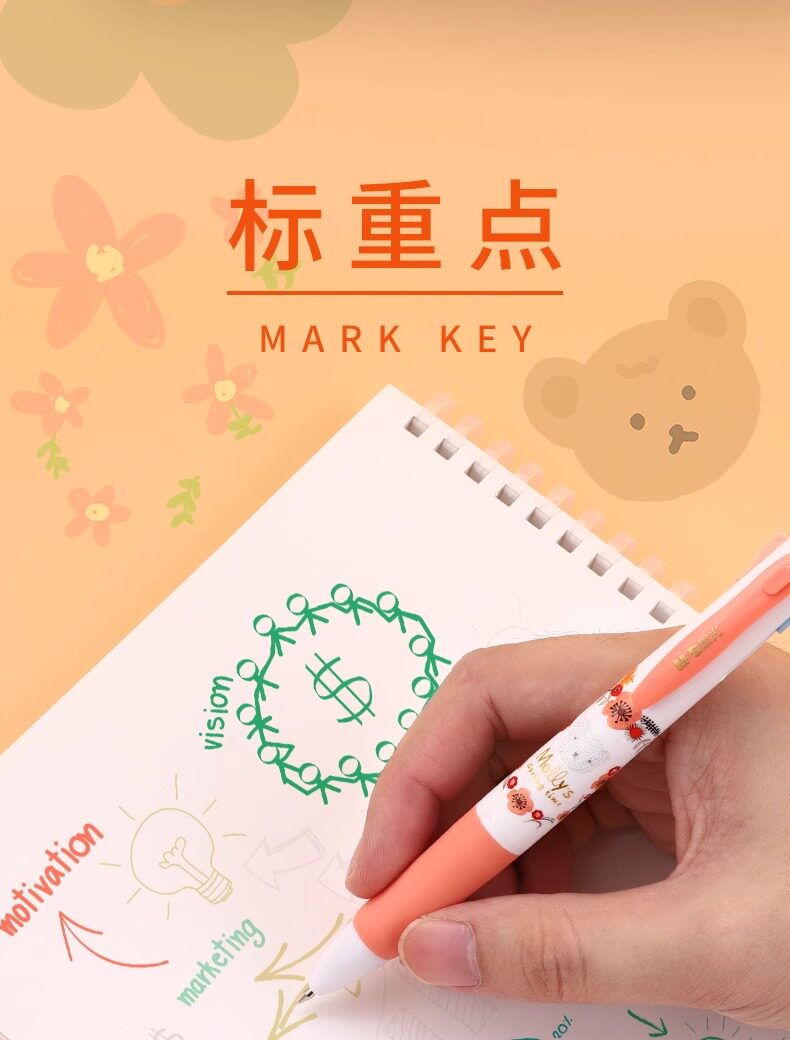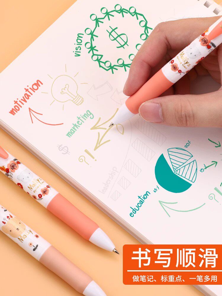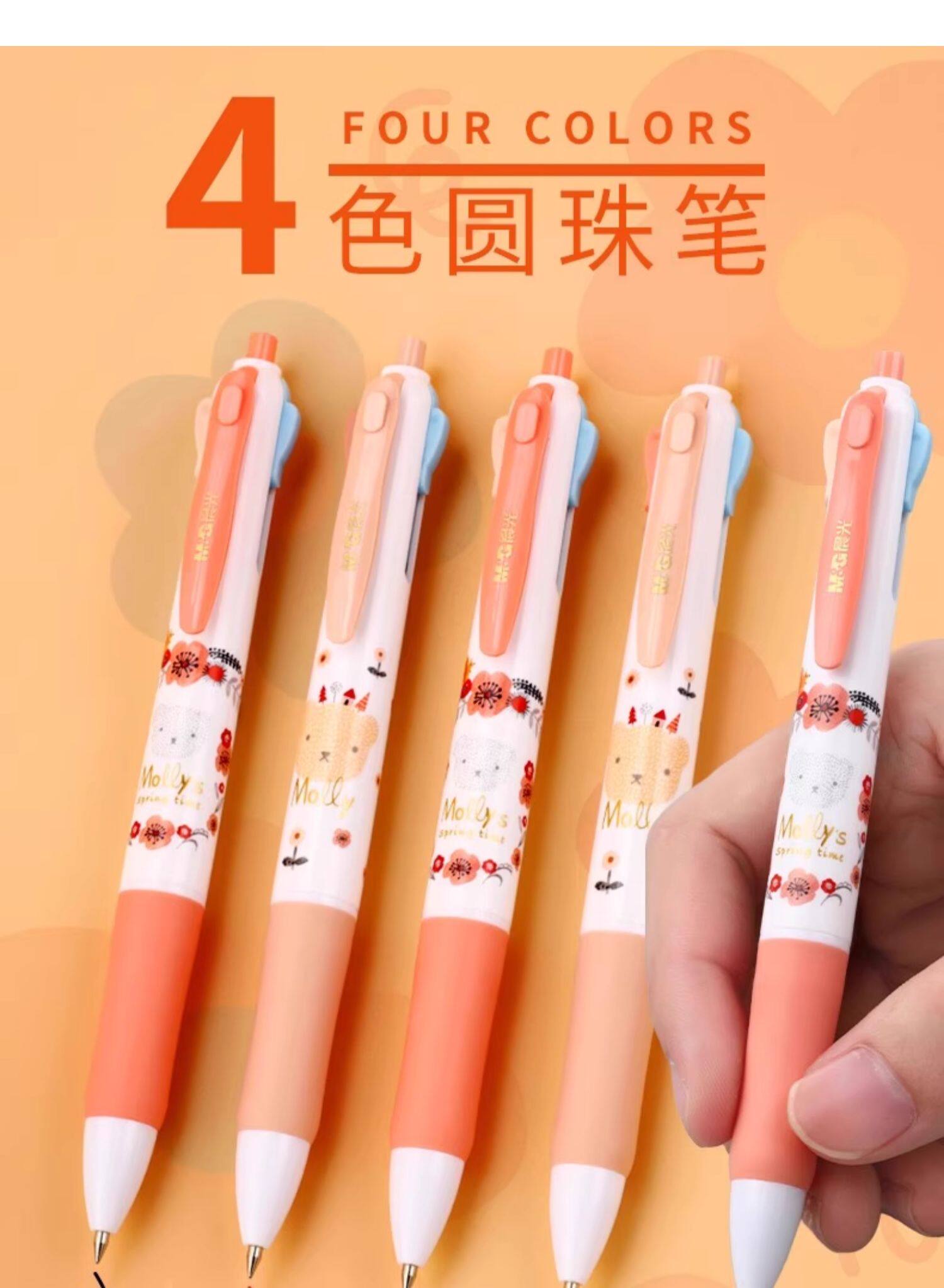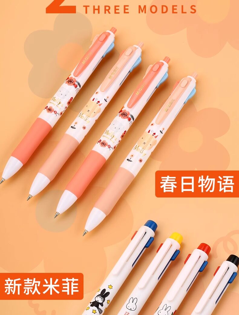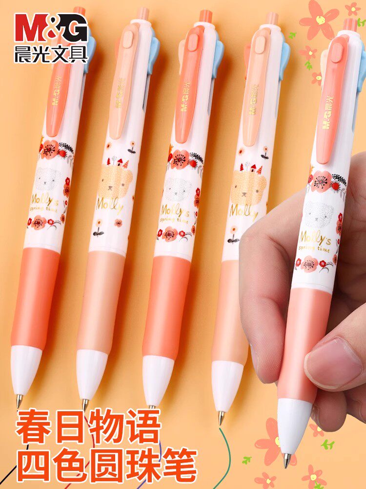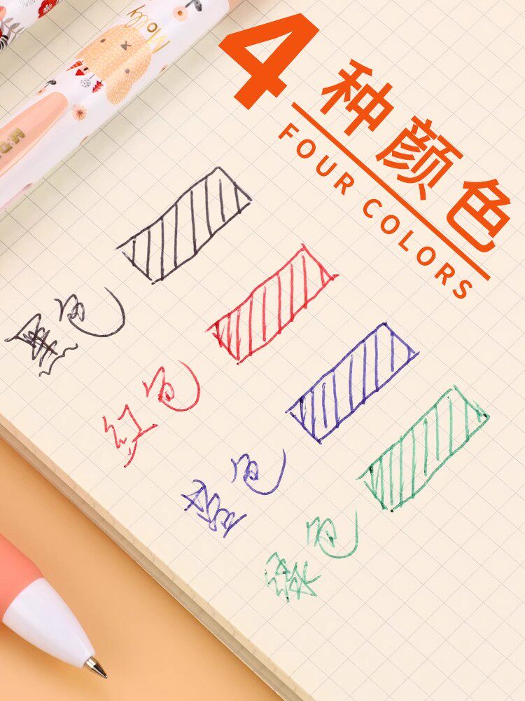 淘宝晨光多色圆珠笔四色笔替换笔芯米菲按压式0.5mm彩色中性油笔五色笔按动4色多功能合一水笔红蓝黑三色笔学生用