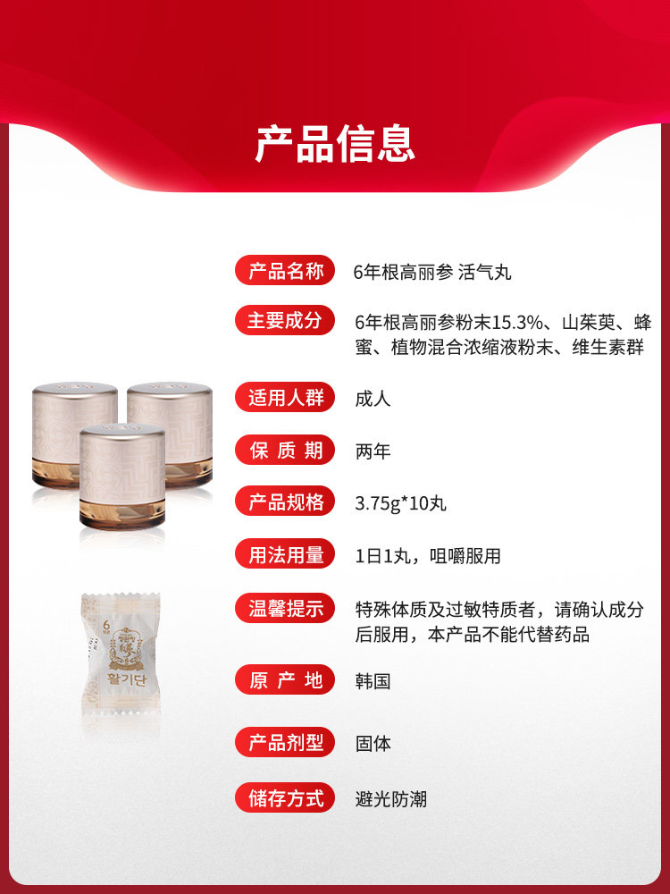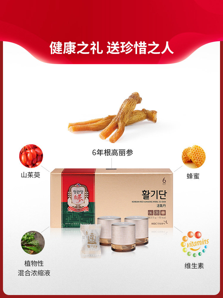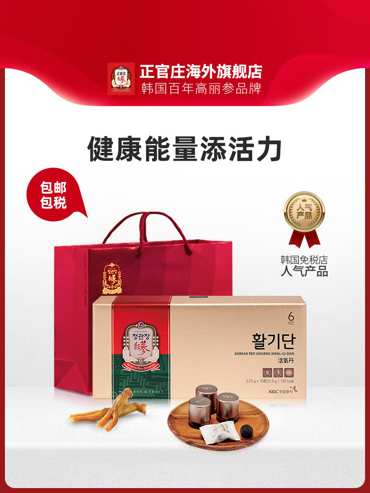 淘宝正官庄韩国高丽参6年根红参活气丹人参礼盒咀嚼型3.75g*10丸保税