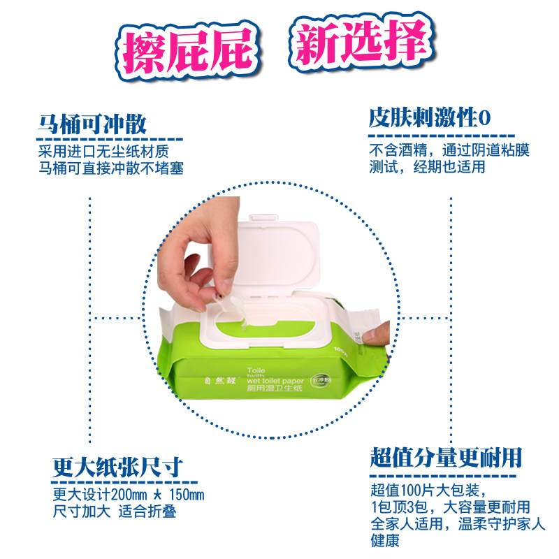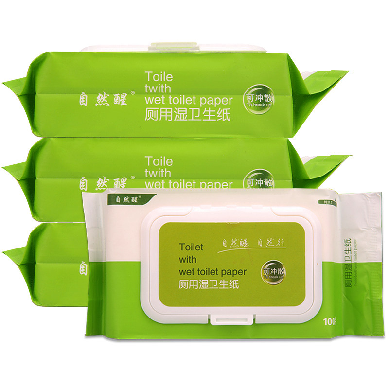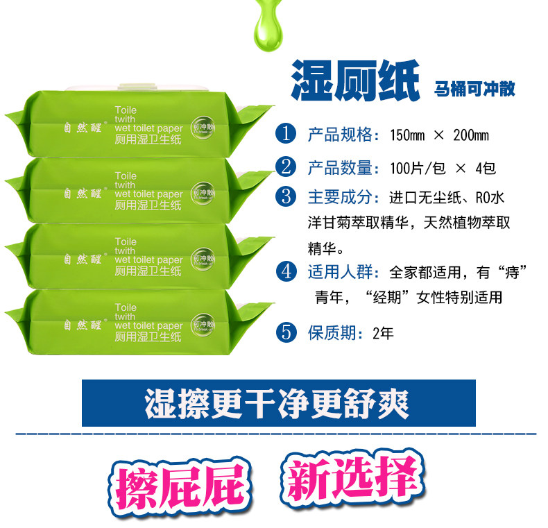 淘宝自然醒湿厕纸洋甘菊湿巾纸4包400抽抽取式可冲入马桶擦屁屁湿纸巾