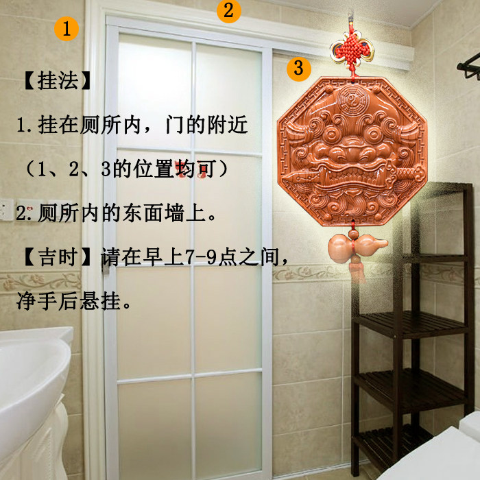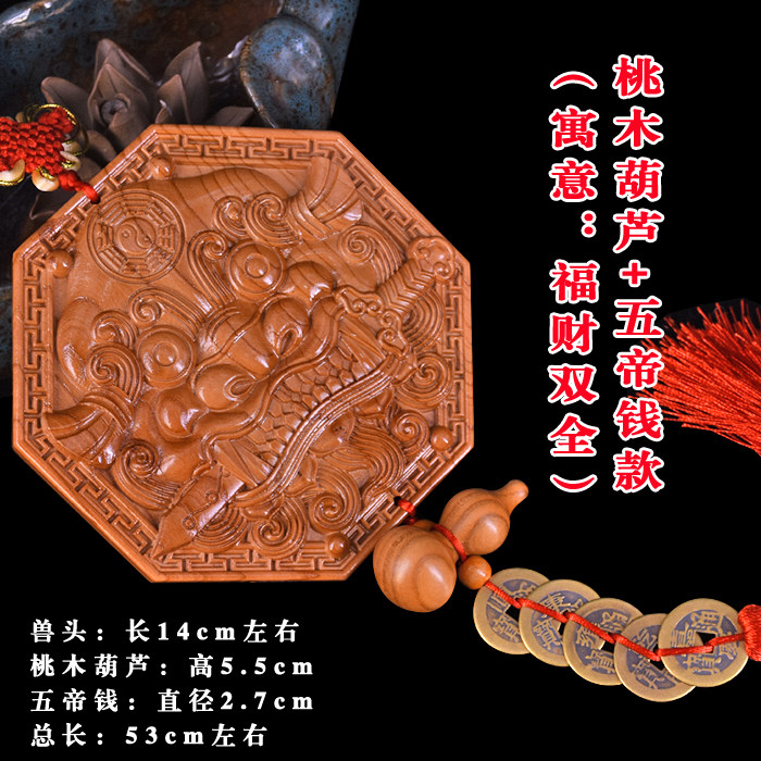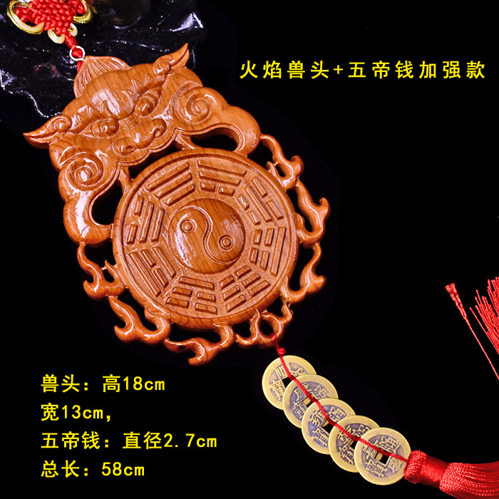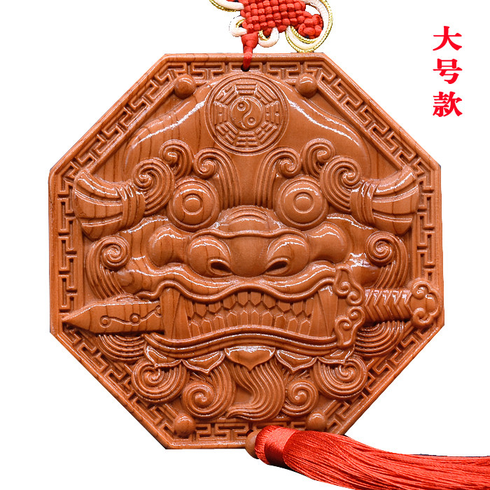 淘宝正宗桃木虎头兽头八卦镜挂件大门对厕所卫生间卧室厨房实木木雕