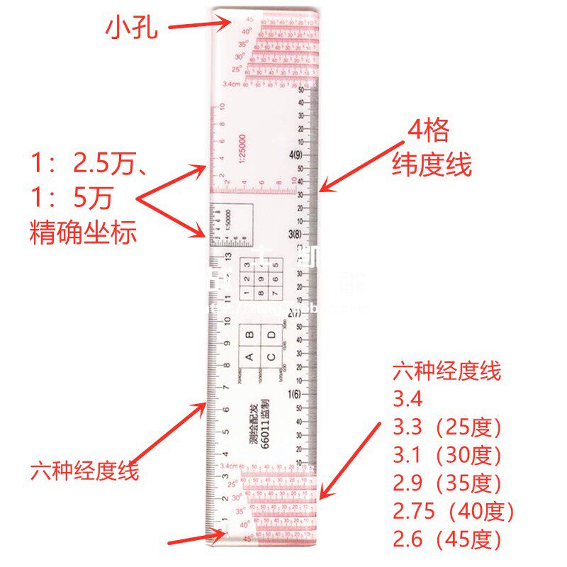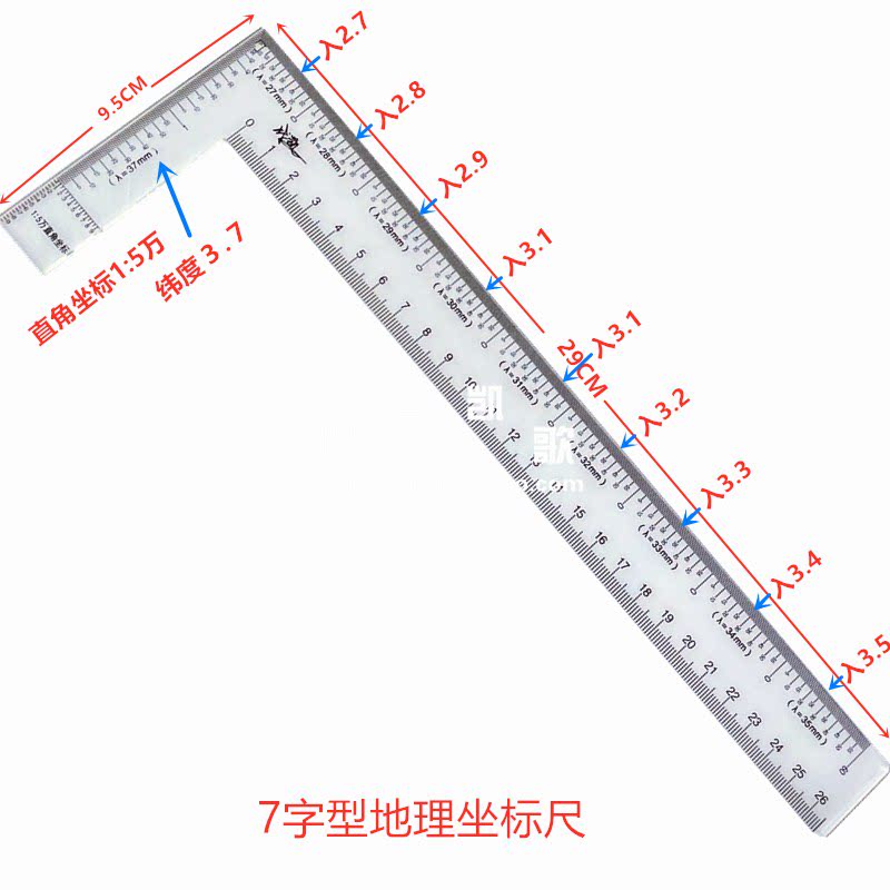 淘宝1:5万经纬度尺/地理坐标尺/直角坐标图上量算尺L型多经纬度尺