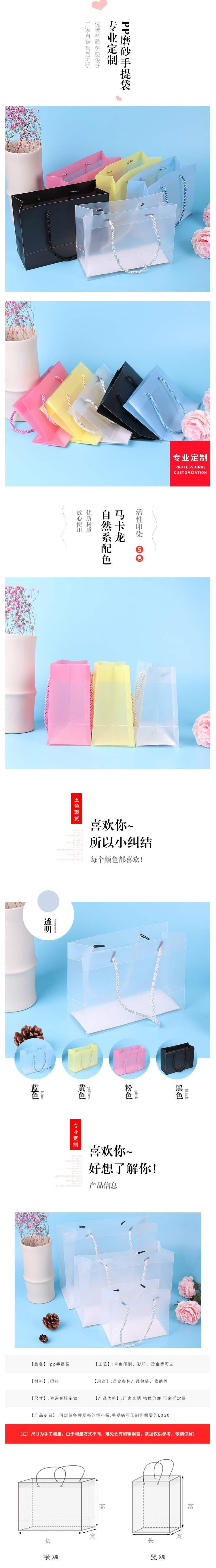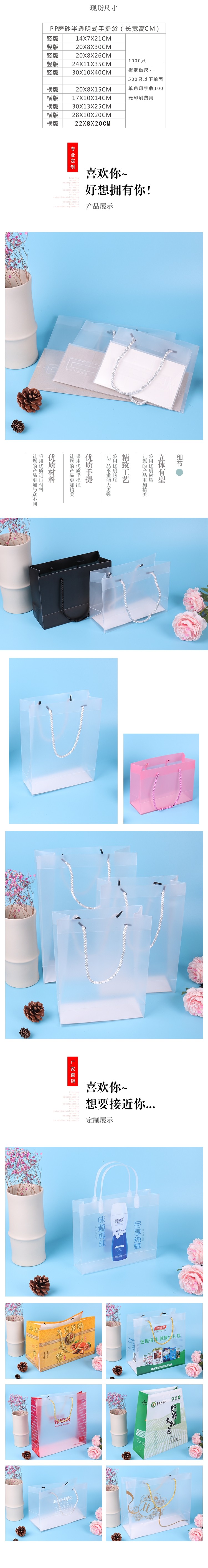 淘宝现货PP塑料透明手提袋PVC包装袋化妆品手提袋PVC磨砂半透明礼品袋