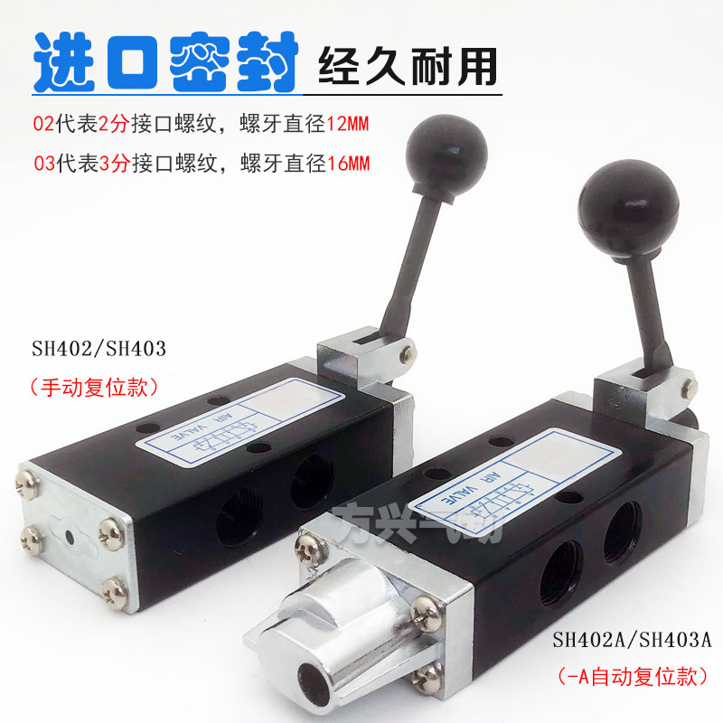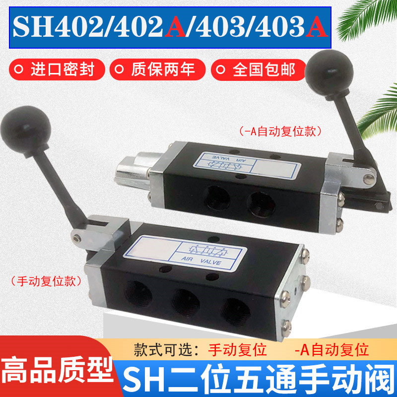 淘宝气动手动阀SH402换向阀二位五通气缸手扳阀手推阀SH-403A自动复位